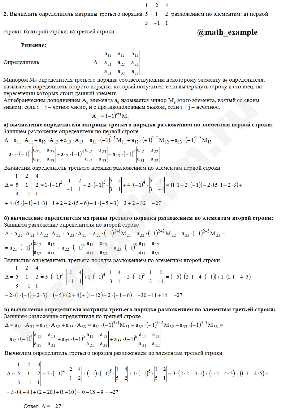 Матрицы, определители примеры решений