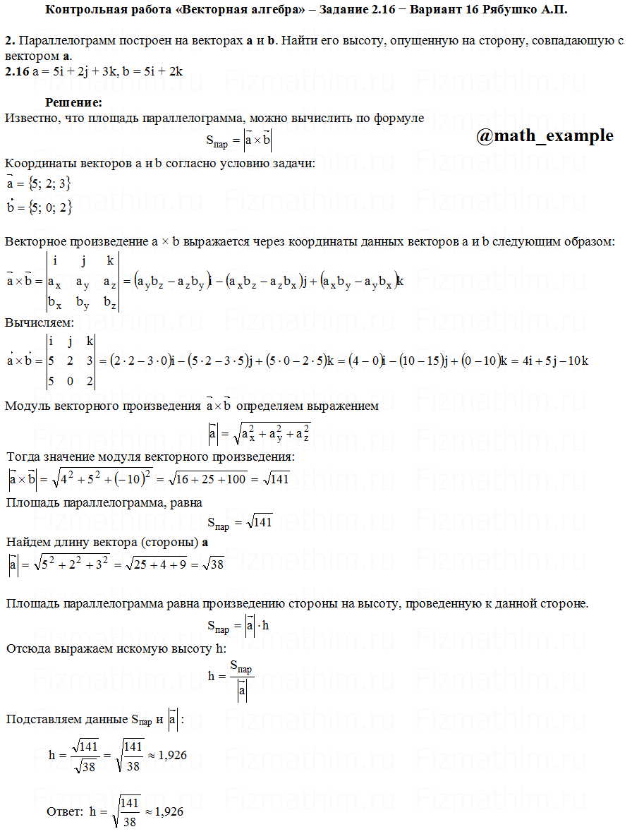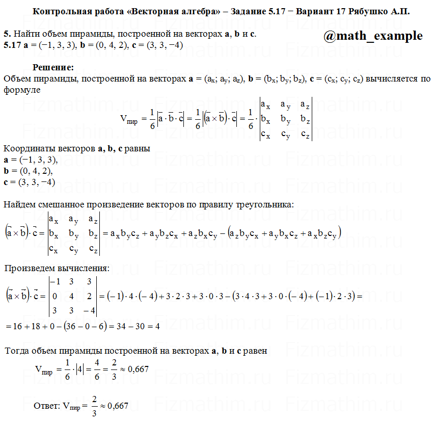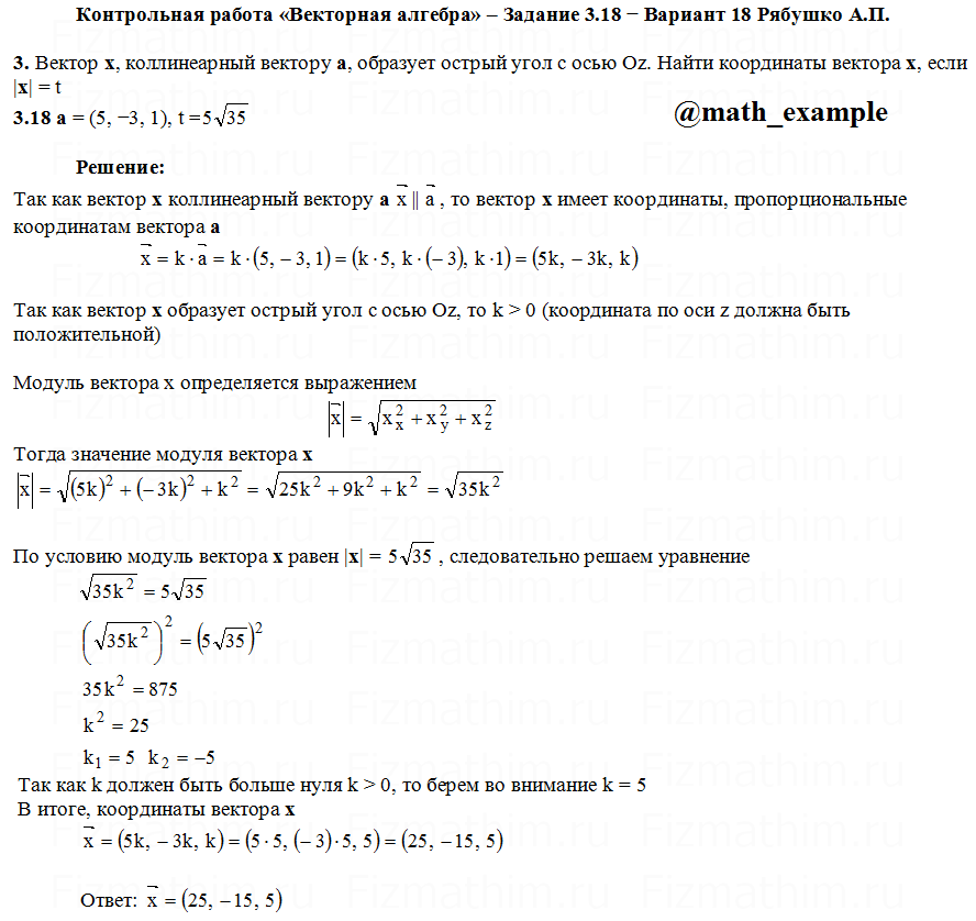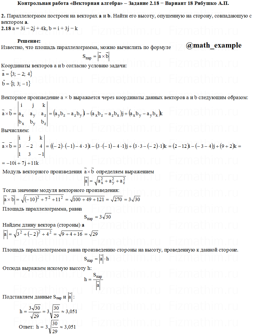 Контрольная работа "Векторная алгебра" Рябушко примеры решений
