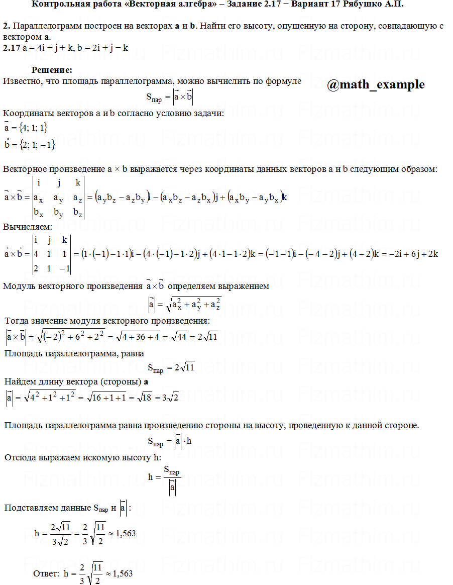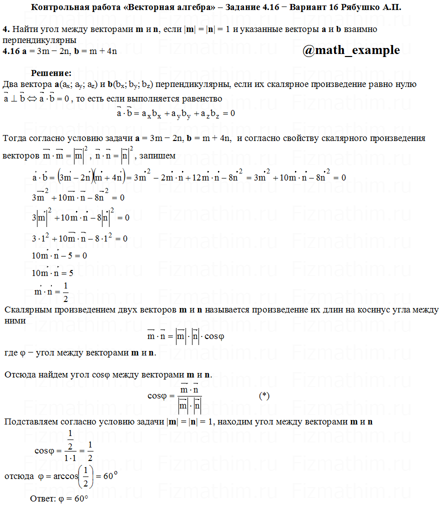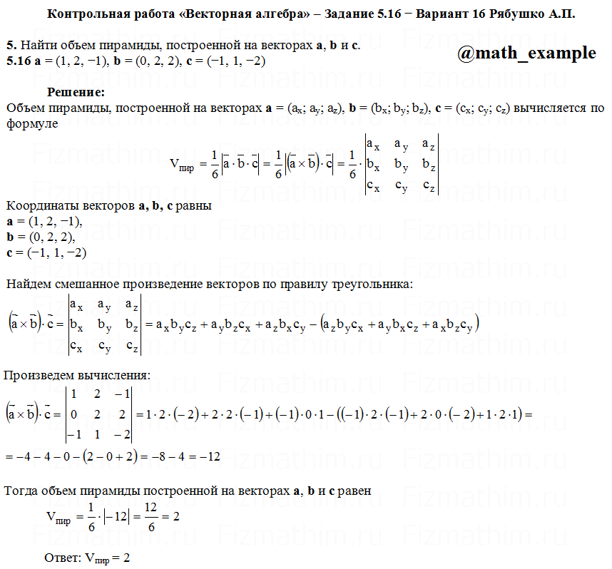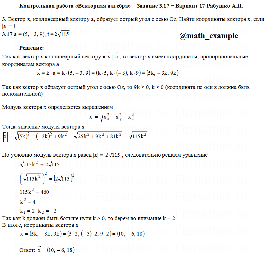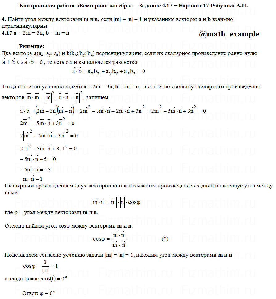 Главная » Фото решений » Аналитическая геометрия » Контрольная работа "Векторная алгебра" Рябушко