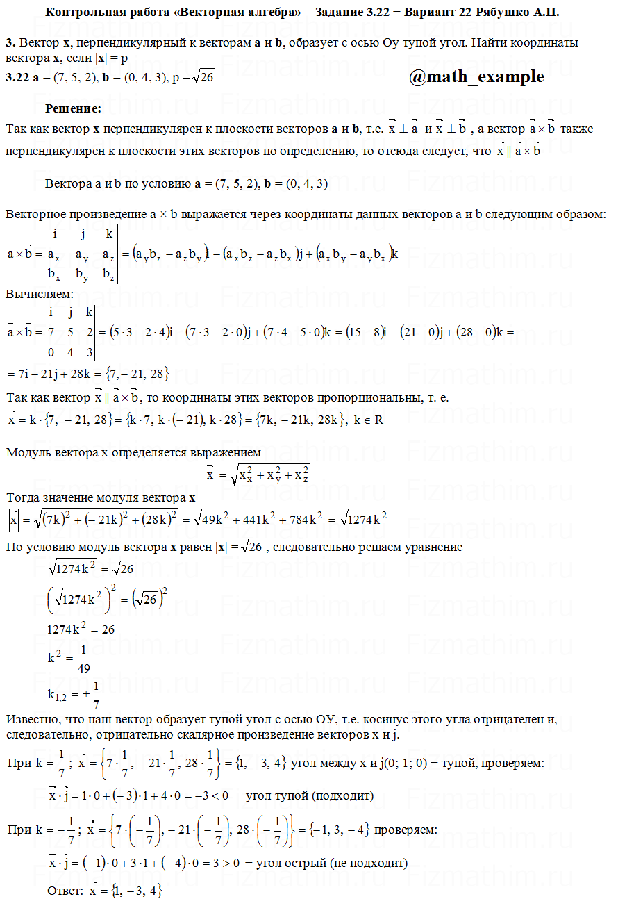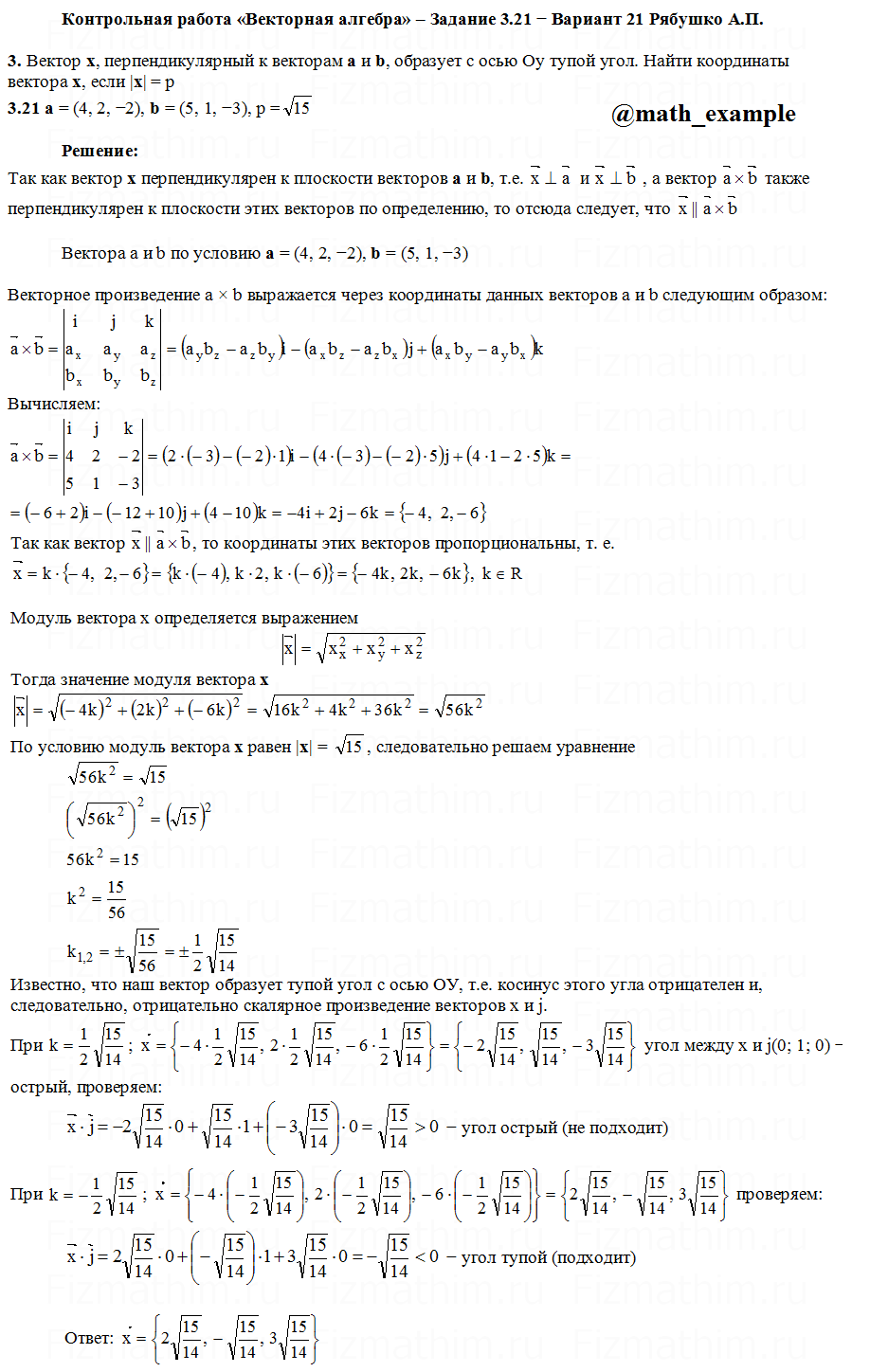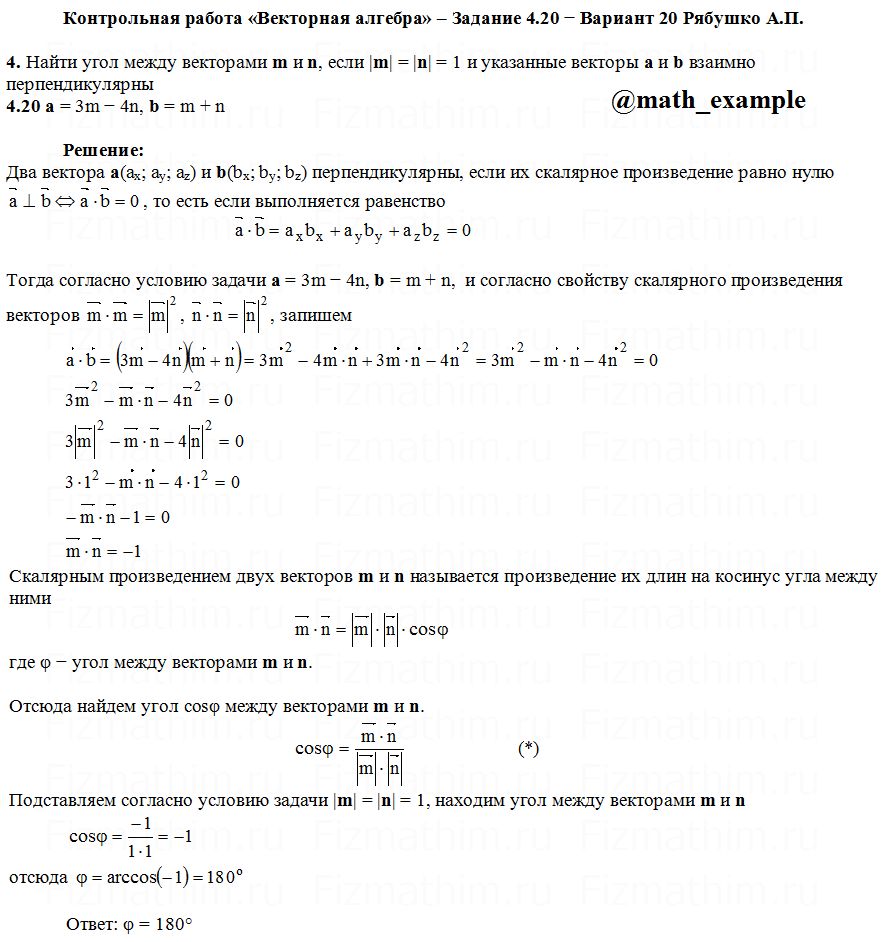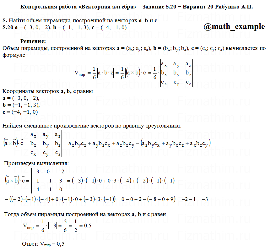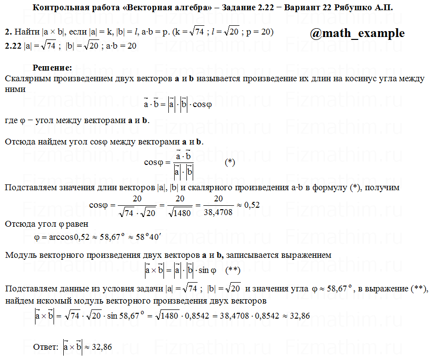 Главная » Фото решений » Аналитическая геометрия » Контрольная работа "Векторная алгебра" Рябушко