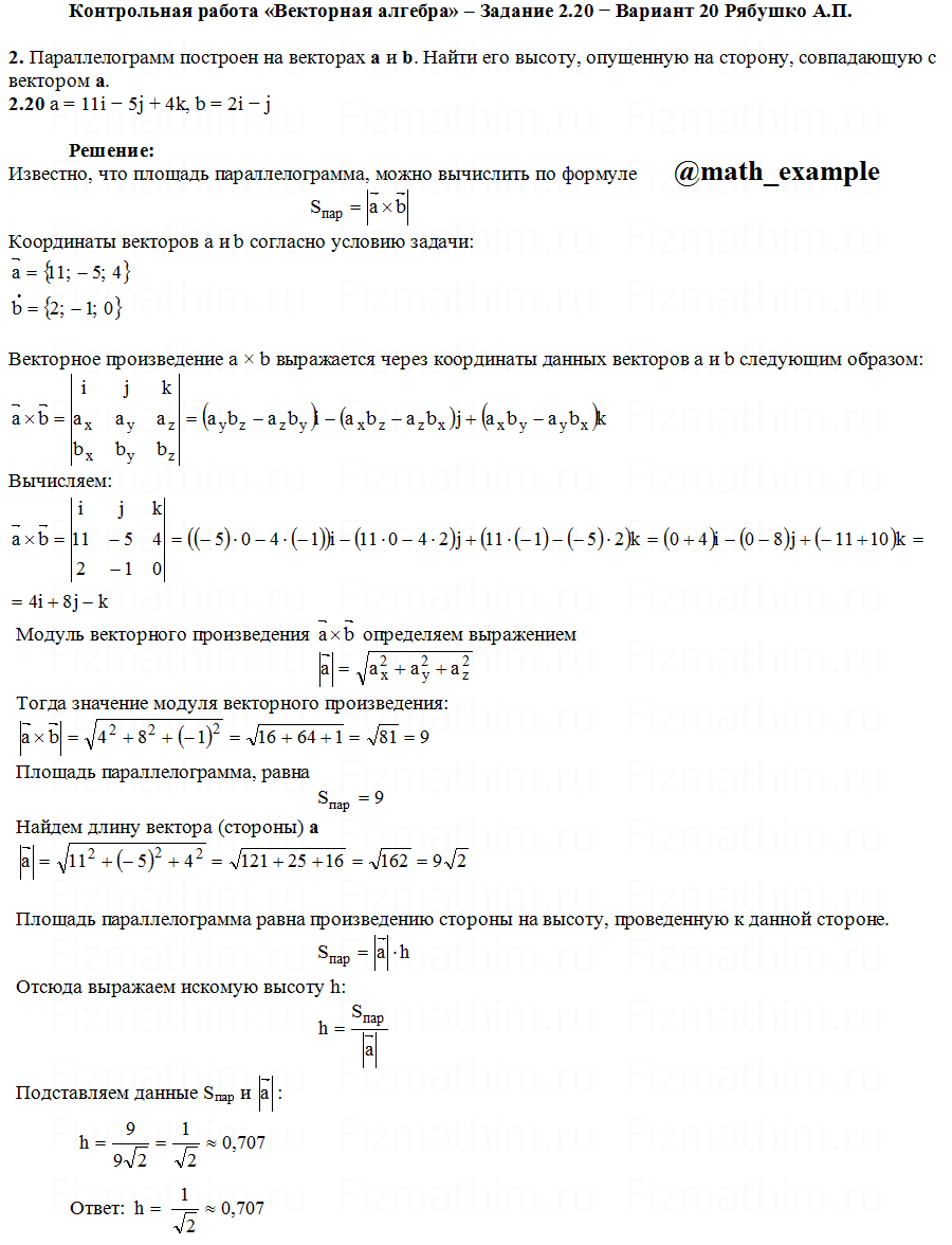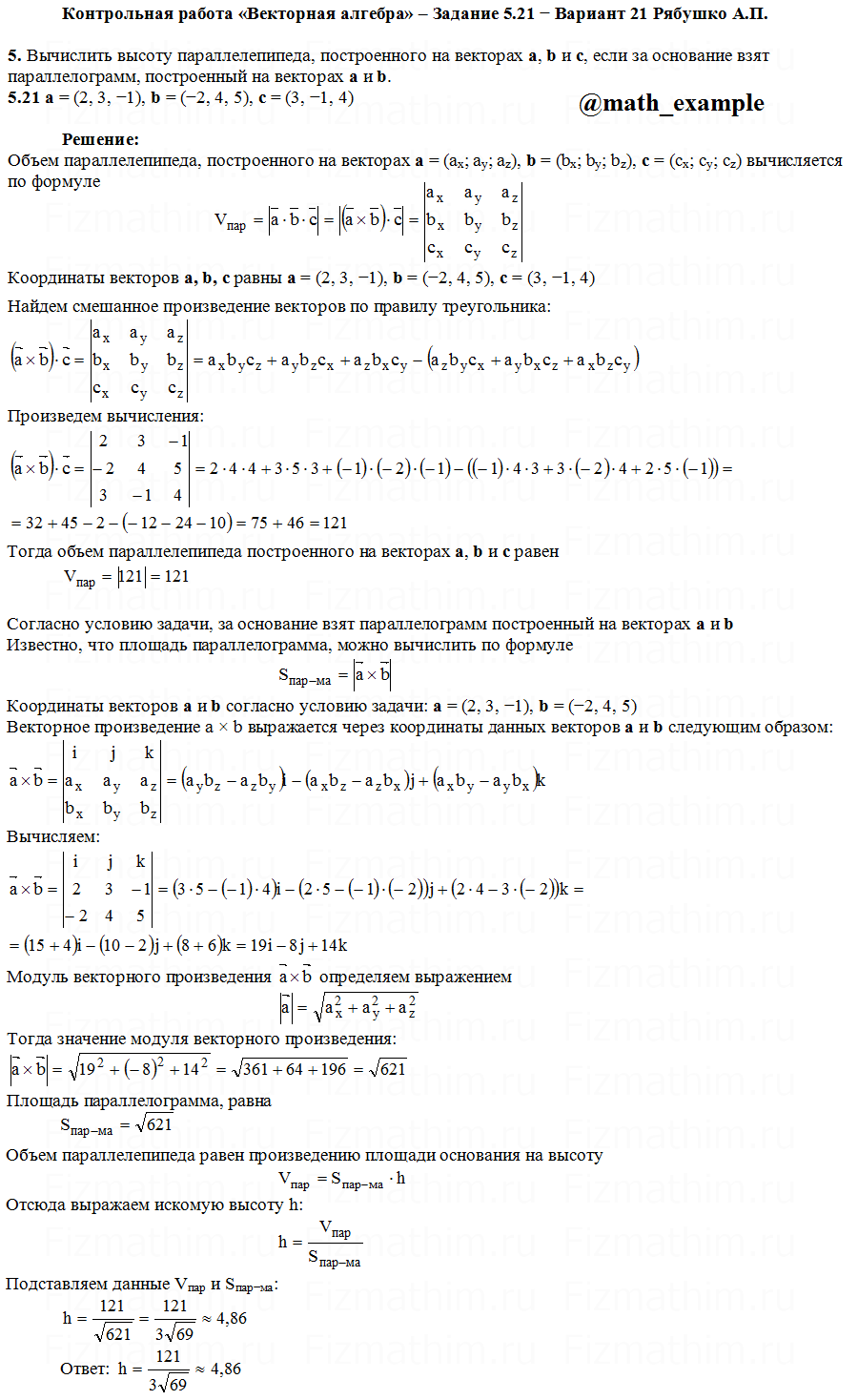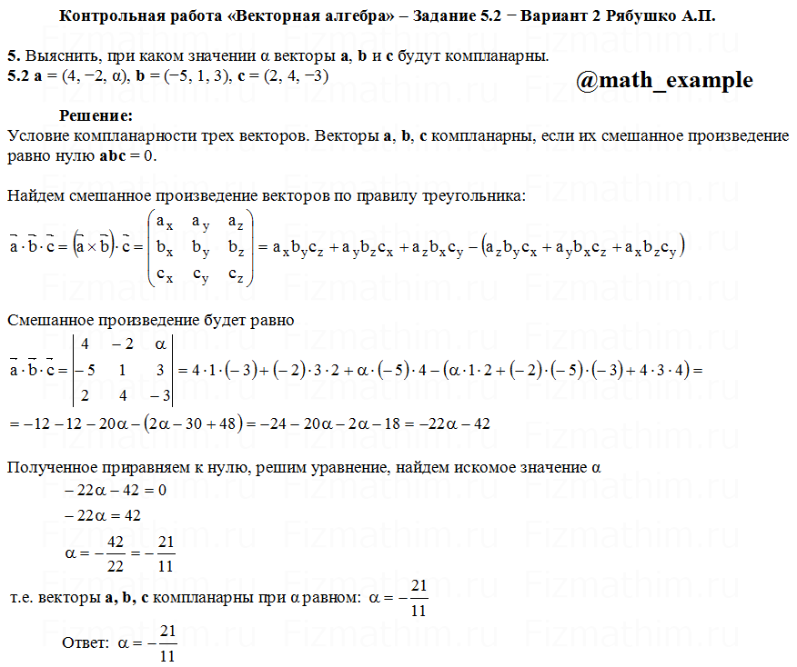 Контрольная работа "Векторная алгебра" Рябушко примеры решений