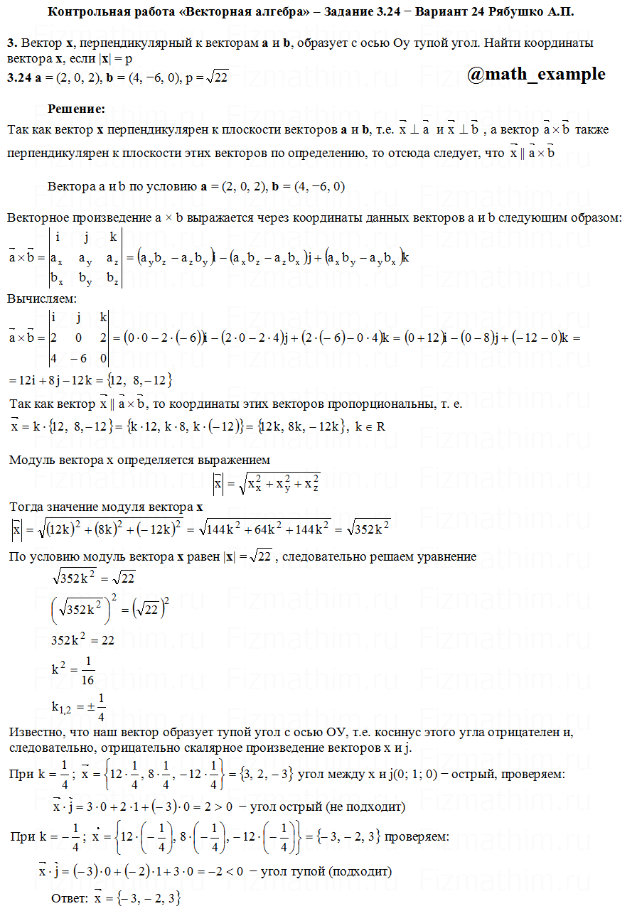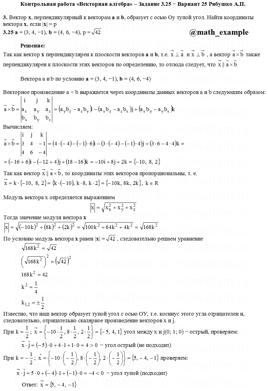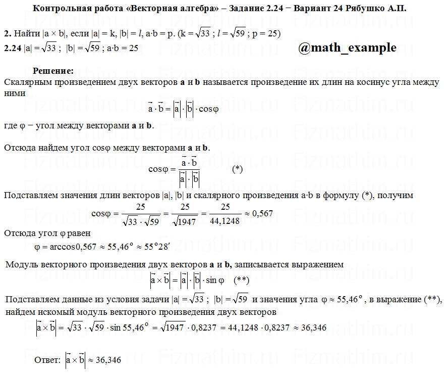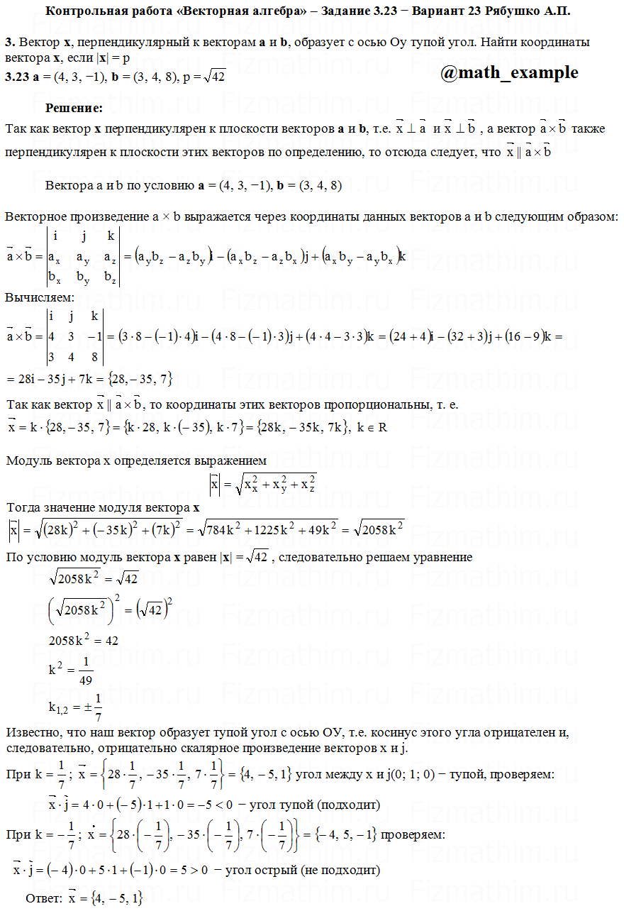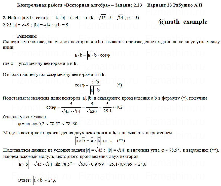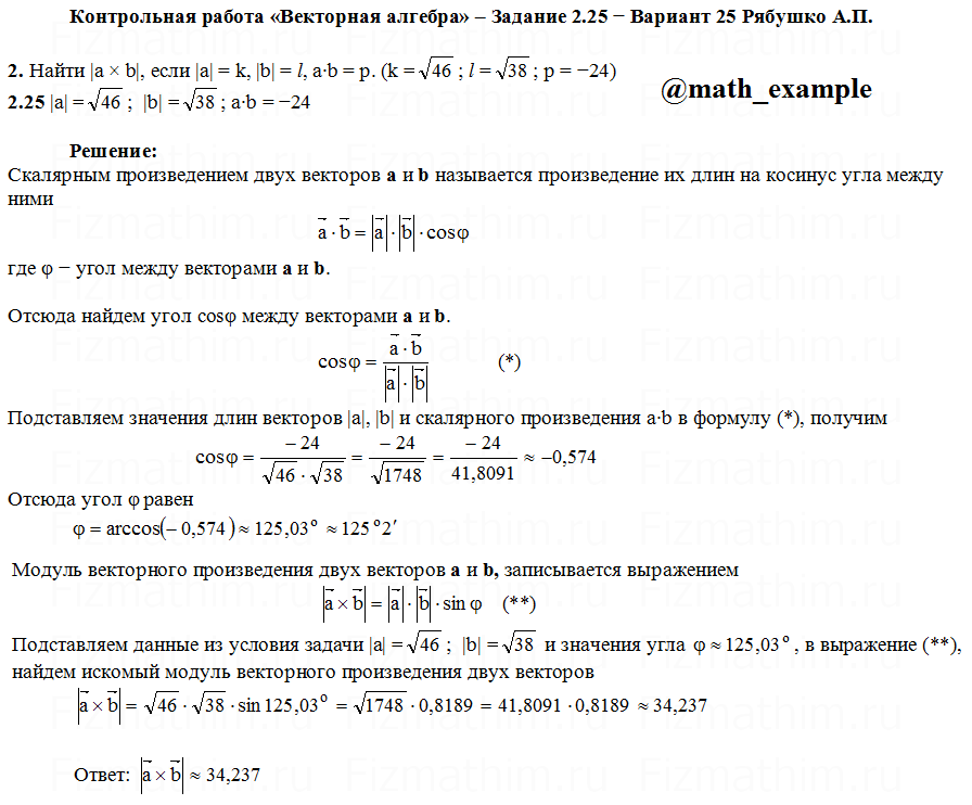 Главная » Фото решений » Аналитическая геометрия » Контрольная работа "Векторная алгебра" Рябушко