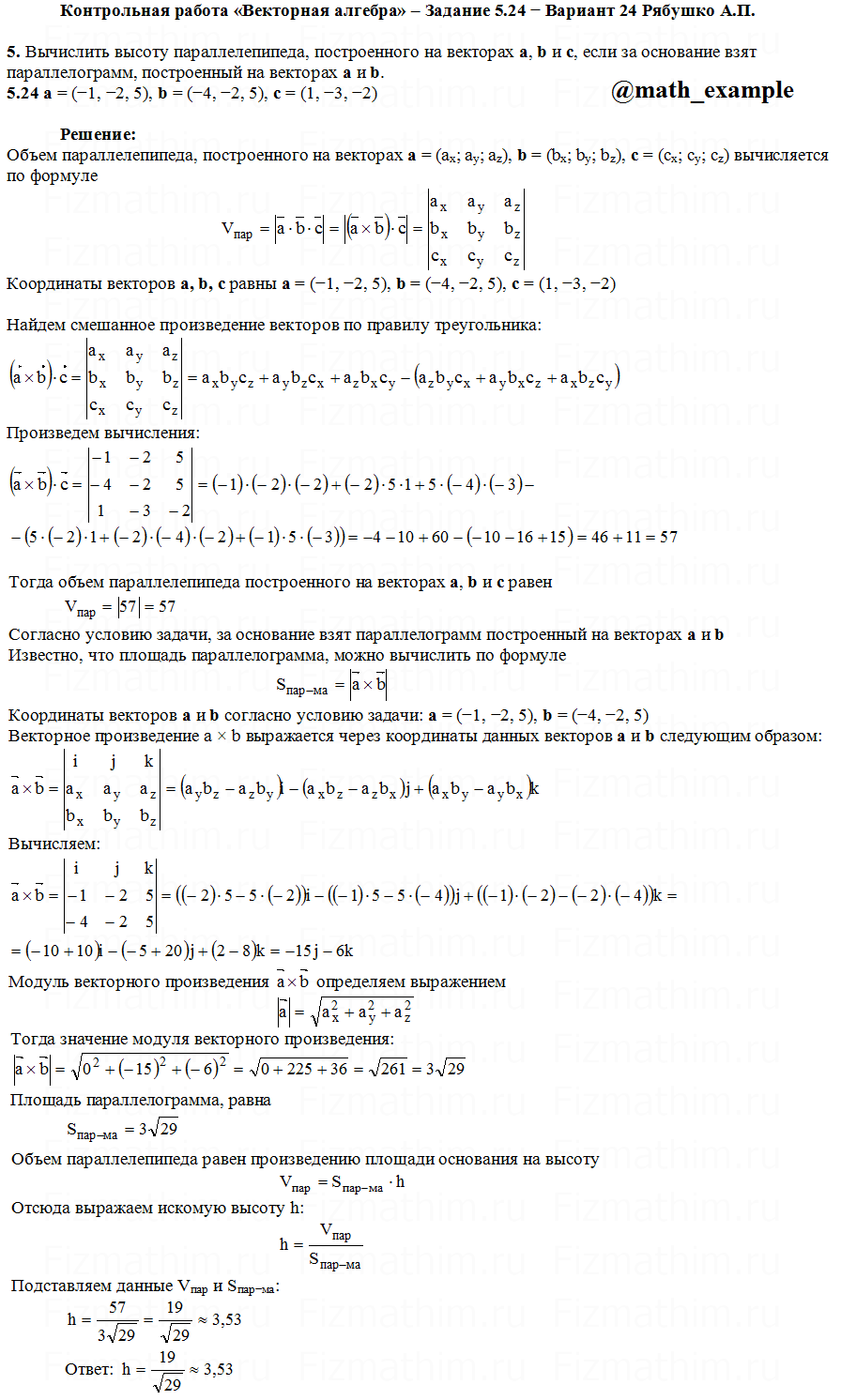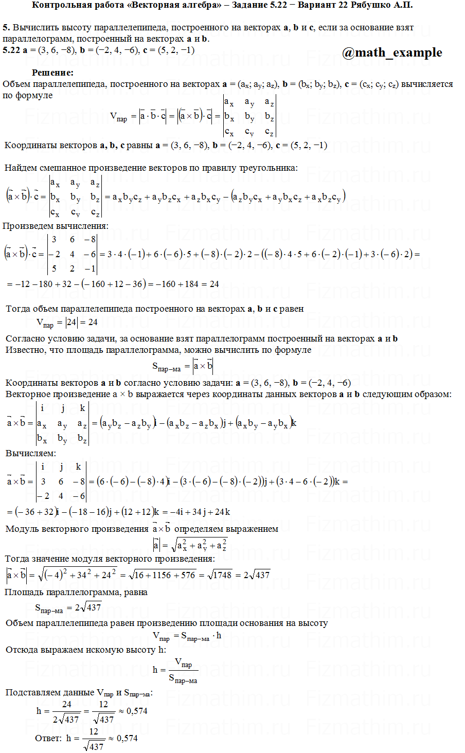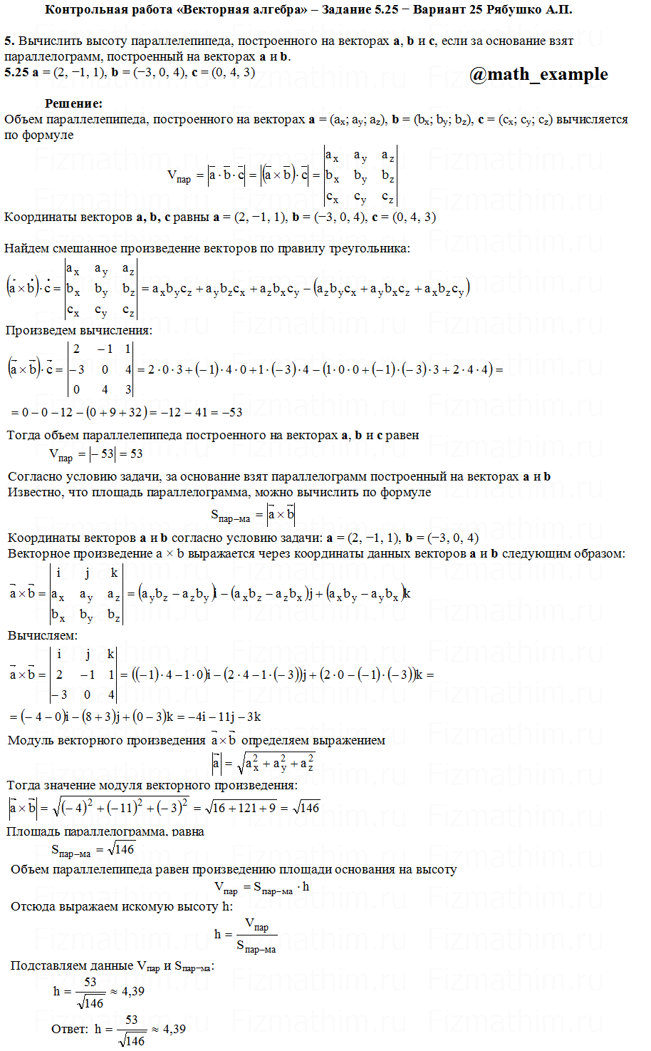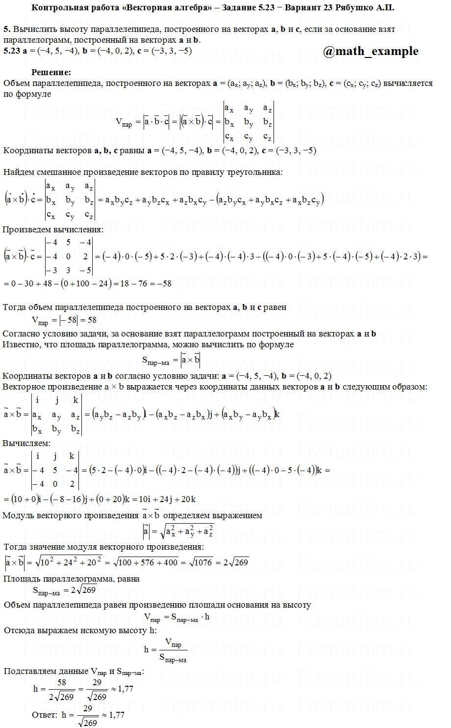 Главная » Фото решений » Аналитическая геометрия » Контрольная работа "Векторная алгебра" Рябушко