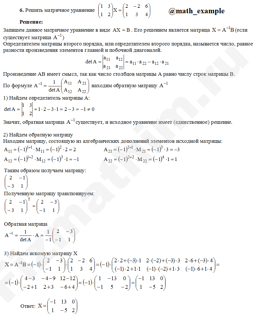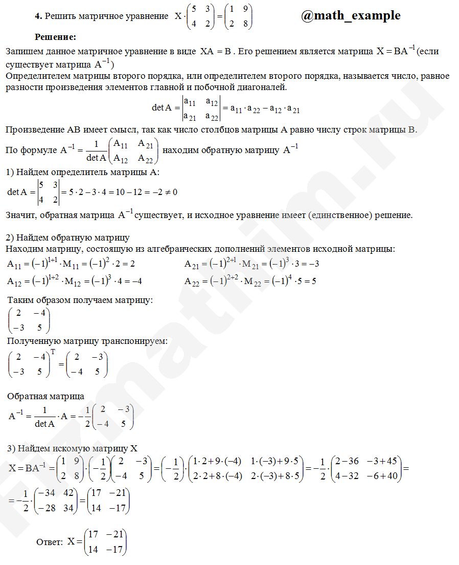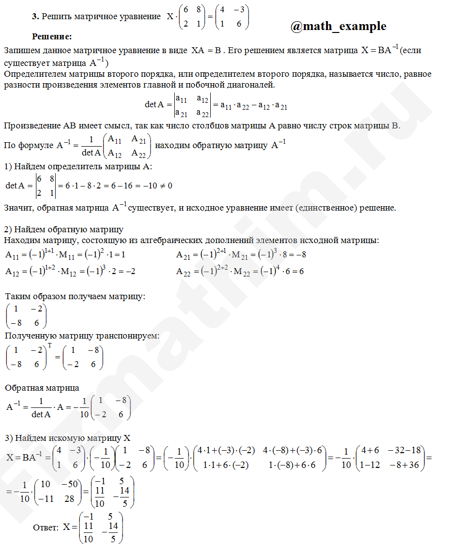 Матричные уравнения. Системы линейных уравнений примеры решений