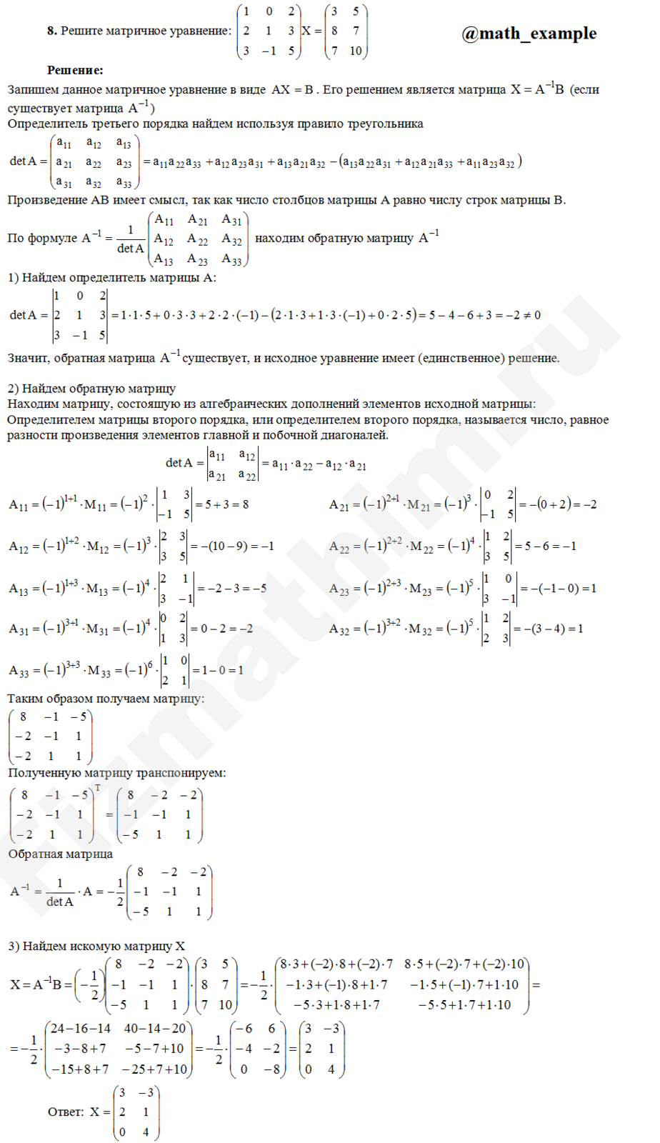 Главная » Фото решений » Аналитическая геометрия » Матричные уравнения. Системы линейных уравнений