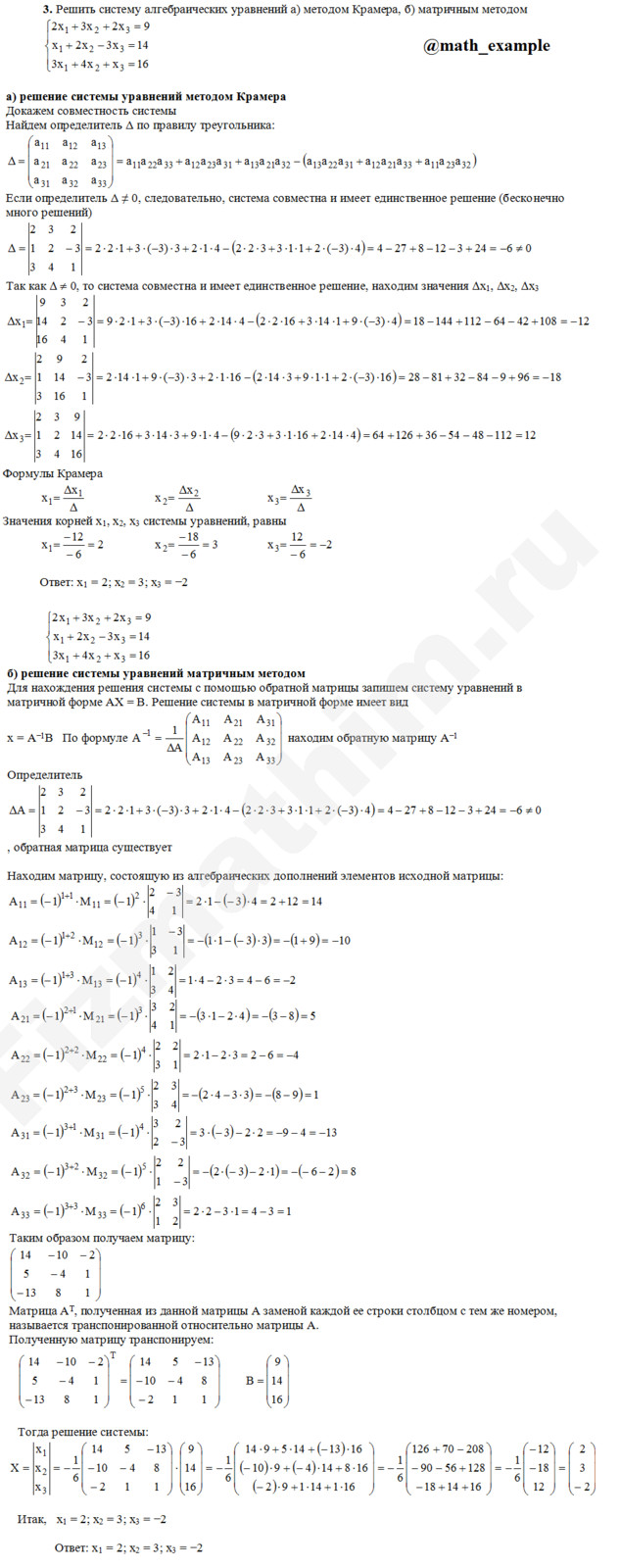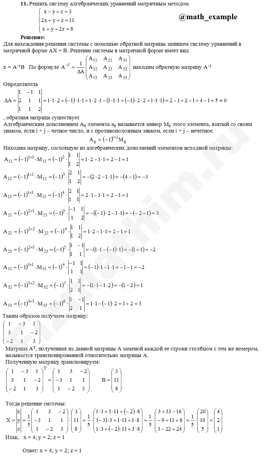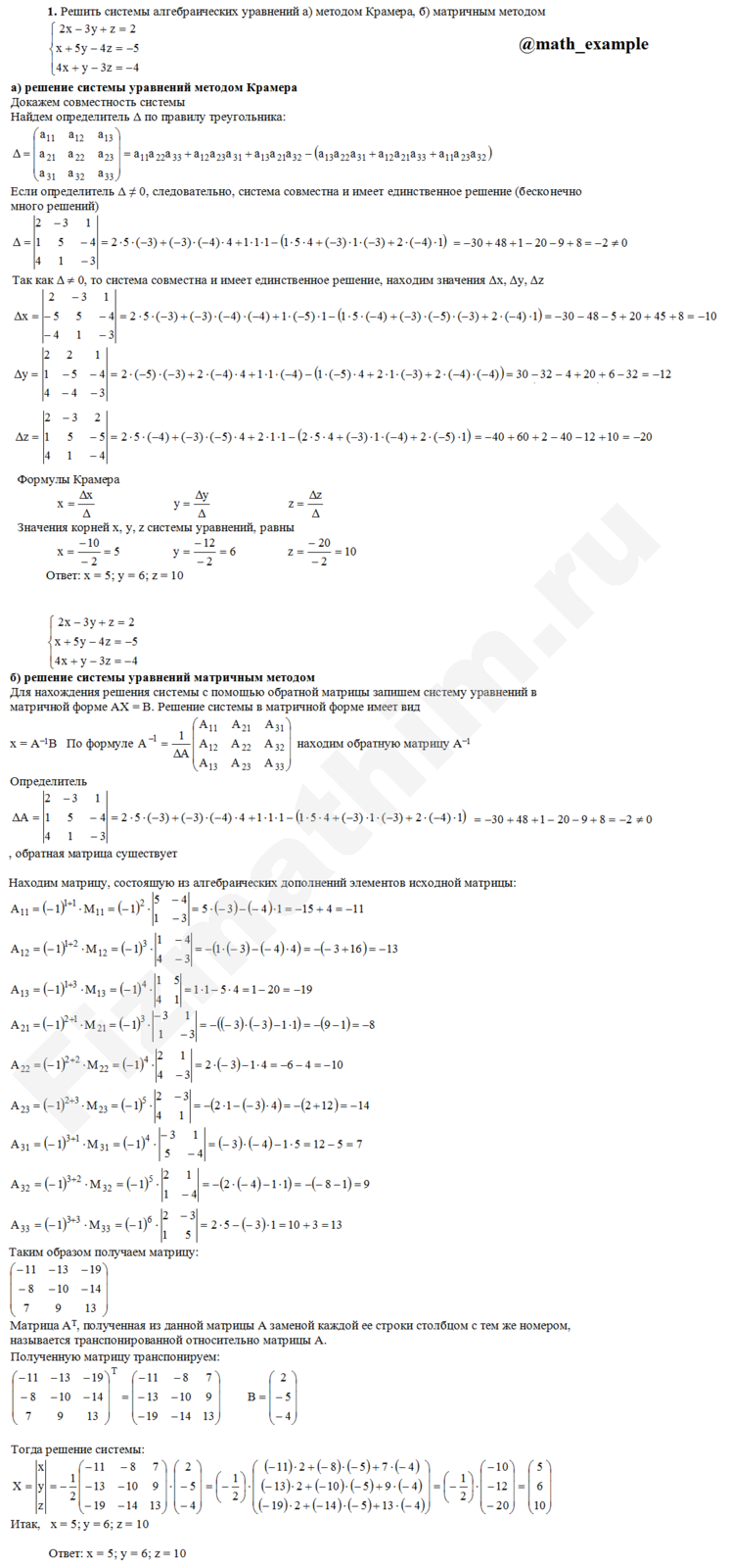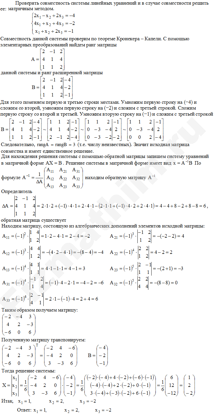 Матричные уравнения. Системы линейных уравнений примеры решенийГлавная » Фото решений » Аналитическая геометрия » Матричные уравнения. Системы линейных уравнений