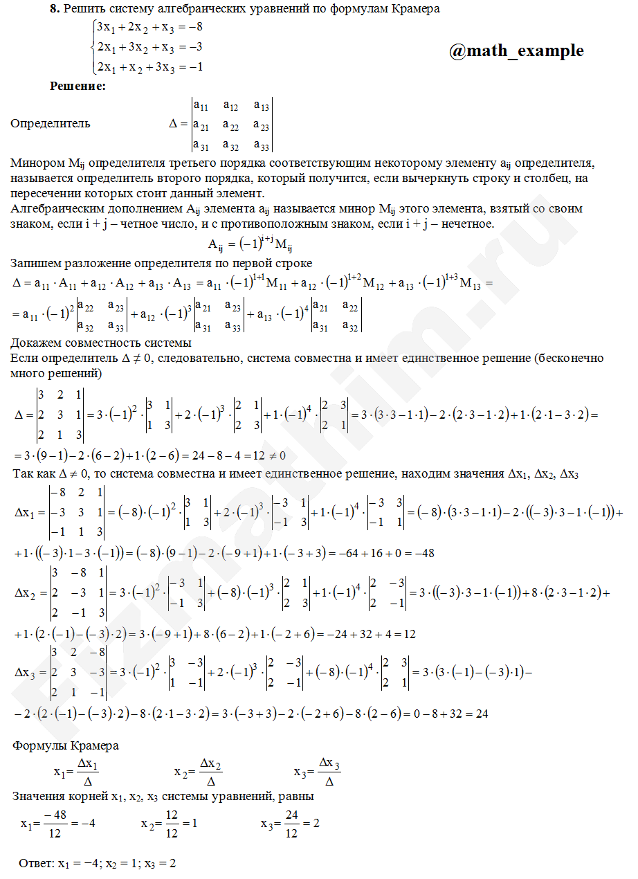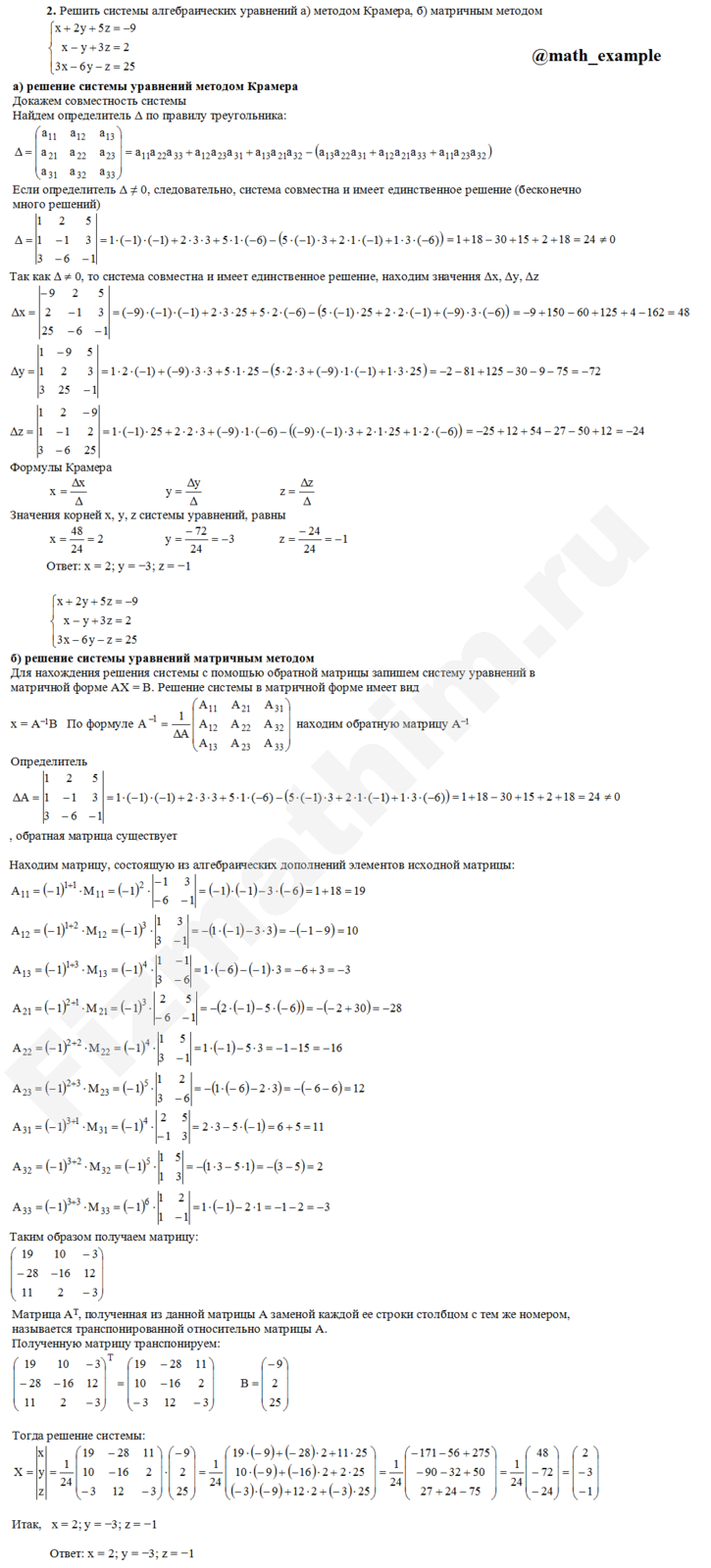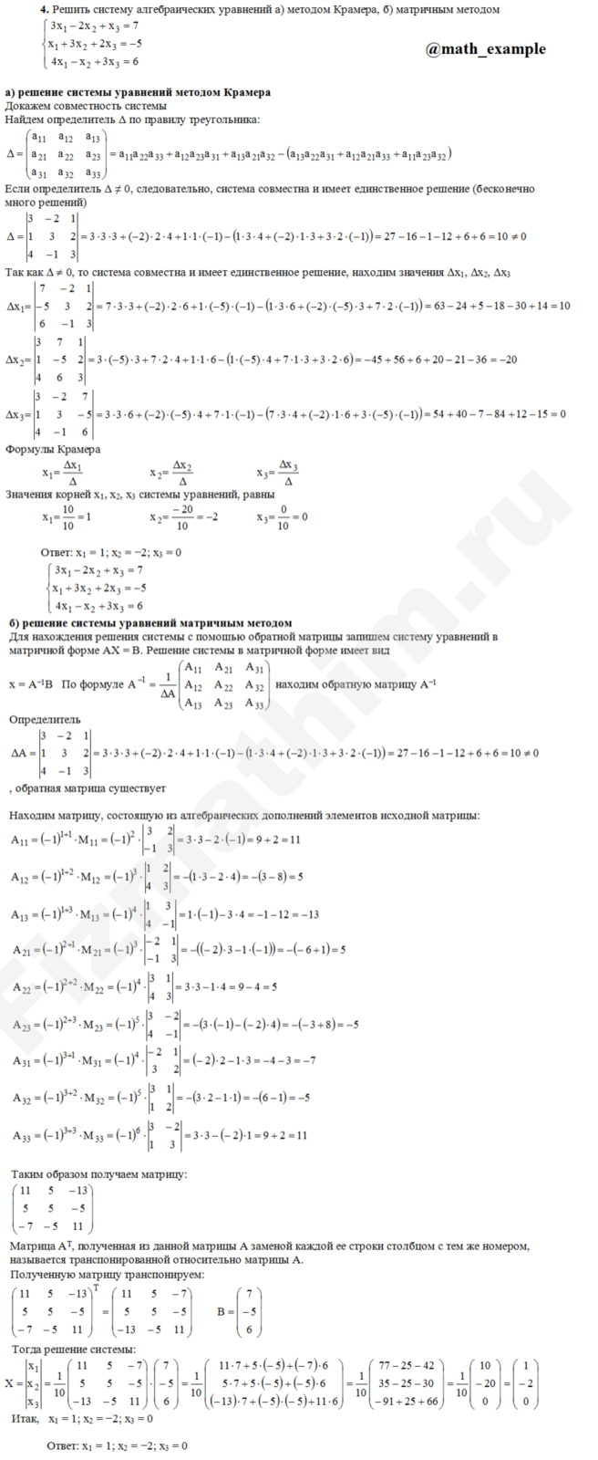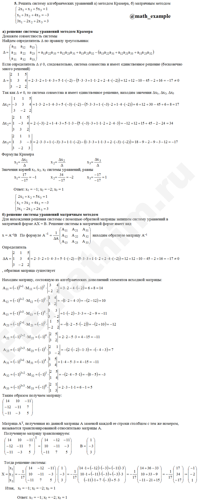 Матричные уравнения. Системы линейных уравнений примеры решенийГлавная » Фото решений » Аналитическая геометрия » Матричные уравнения. Системы линейных уравнений