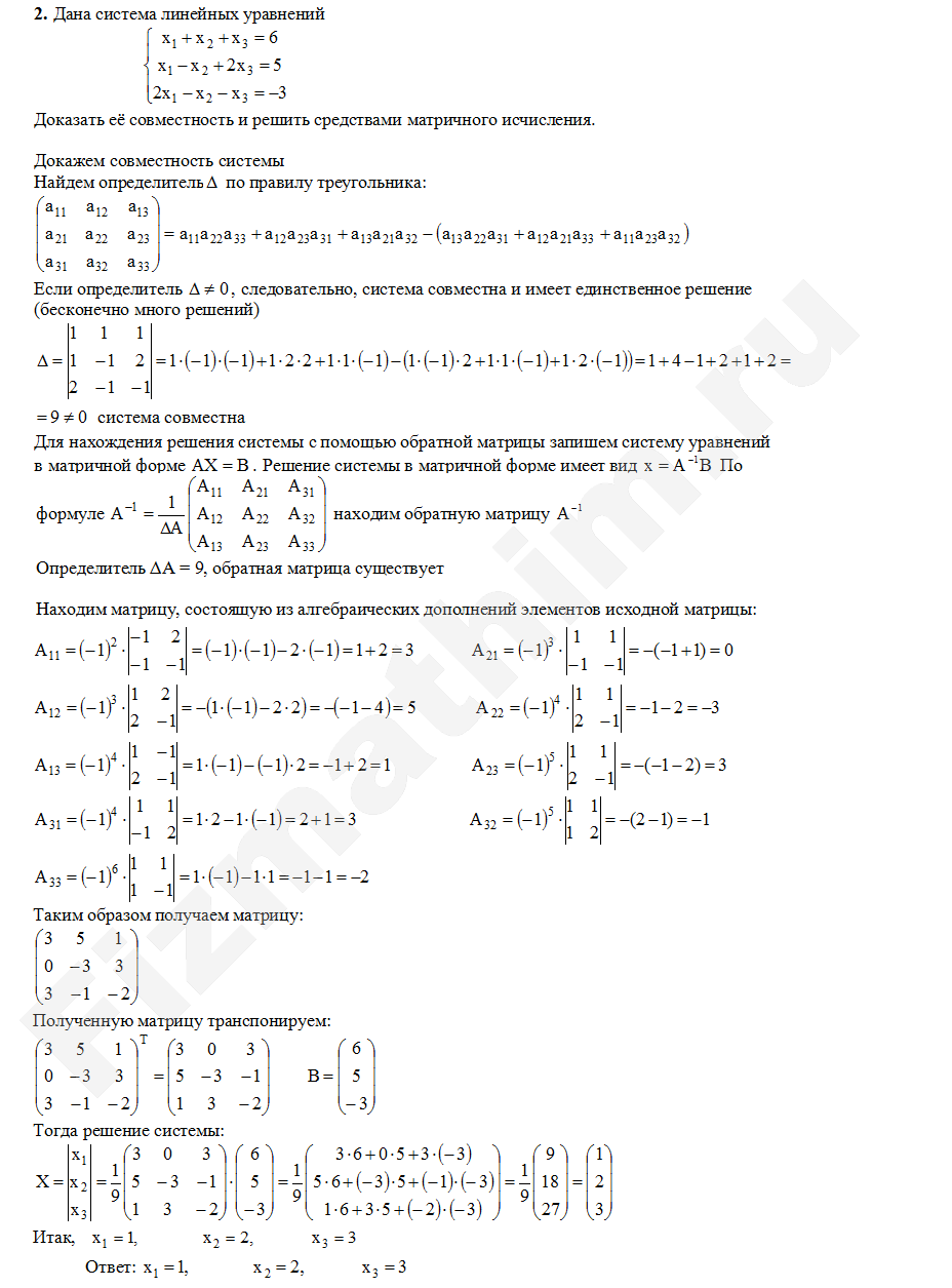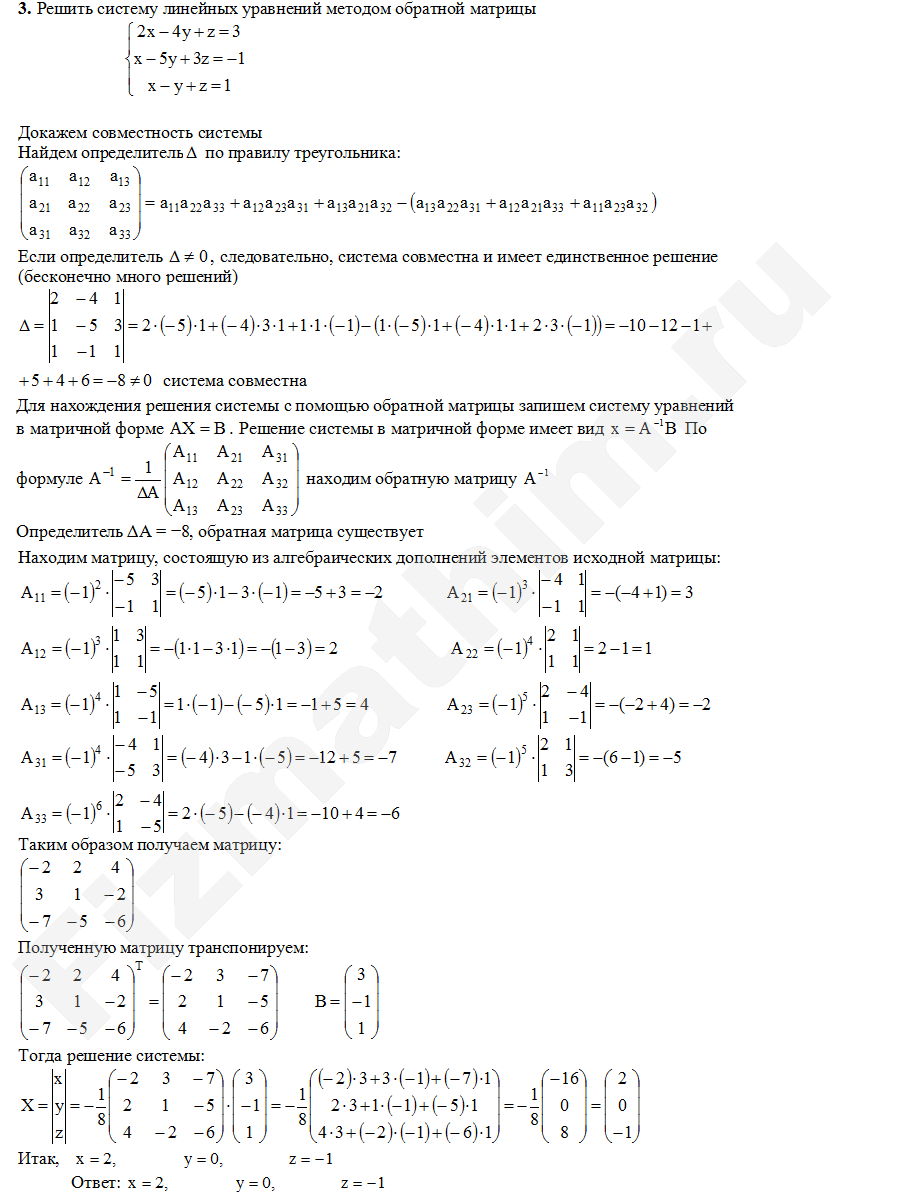 Главная » Фото решений » Аналитическая геометрия » Матричные уравнения. Системы линейных уравнений