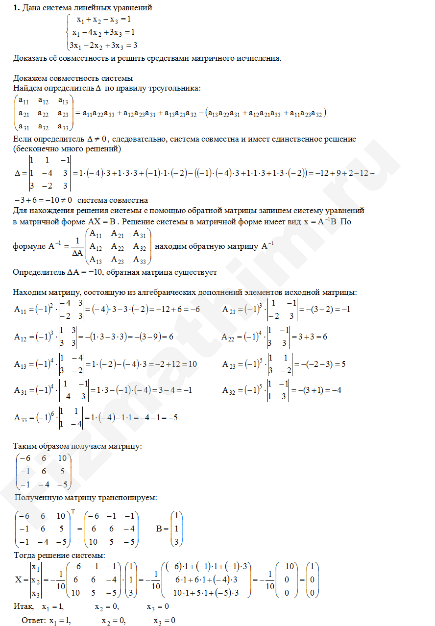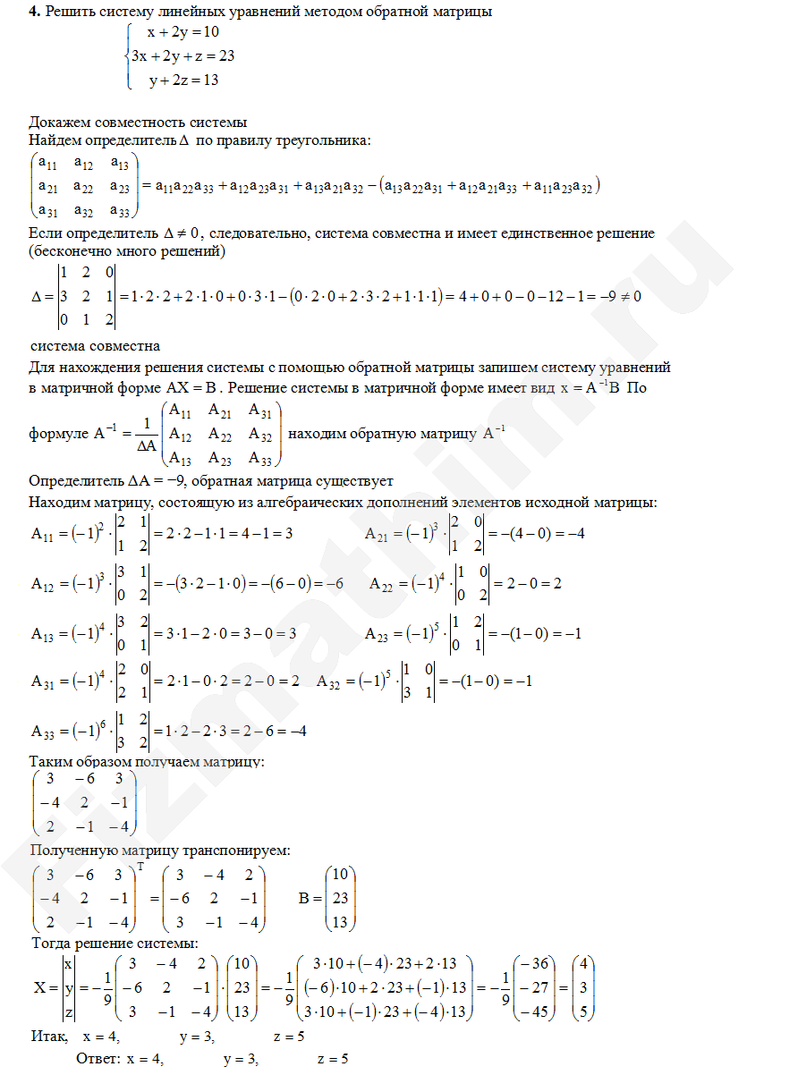 Матричные уравнения. Системы линейных уравнений примеры решений