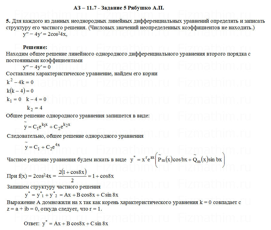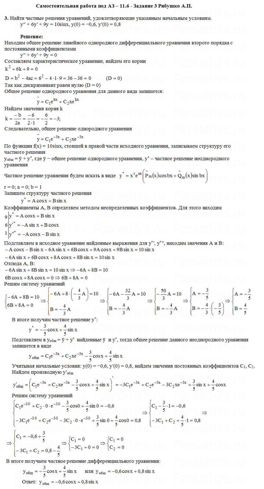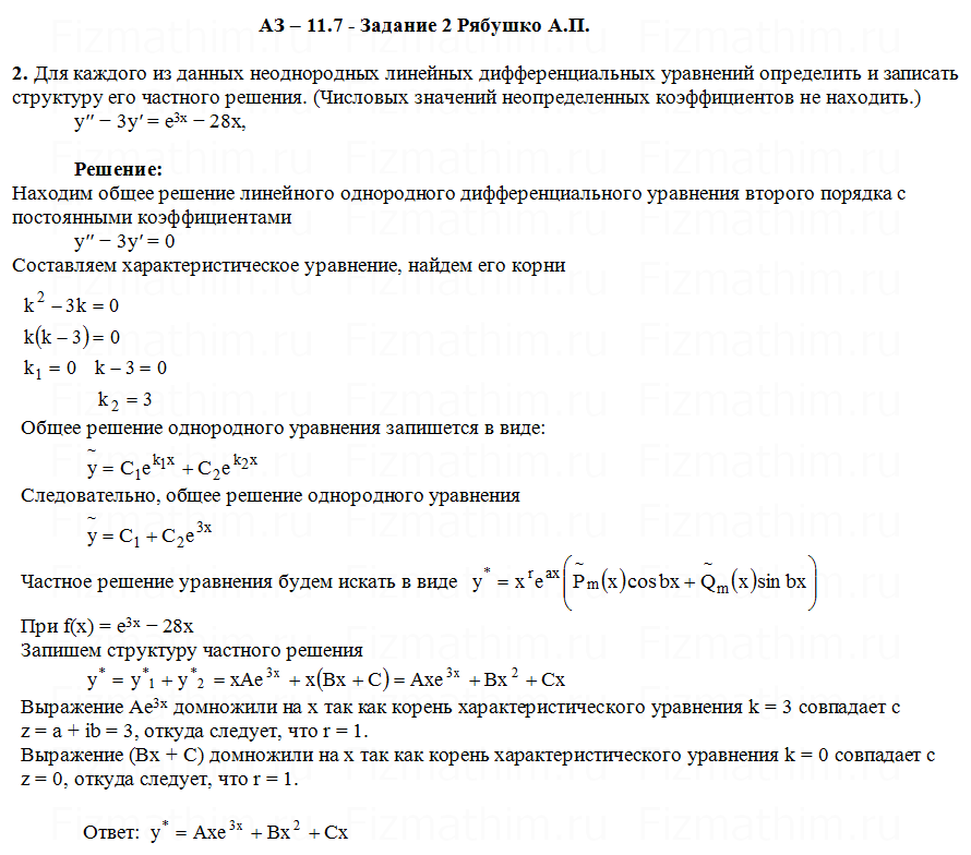 Решенные задания и примеры решений на тему дифференциальные уравнения