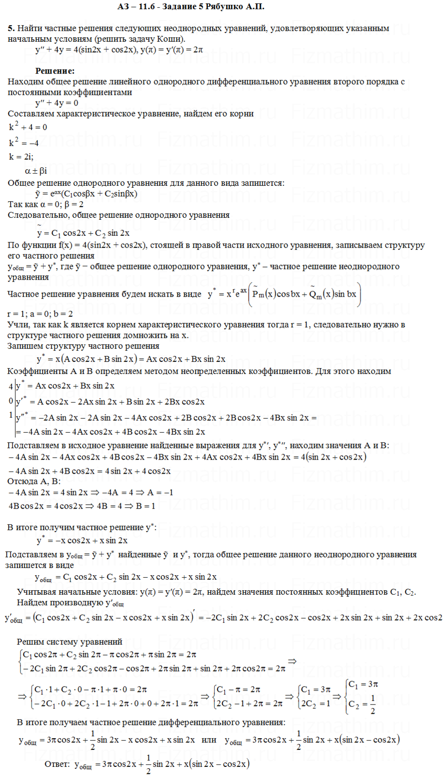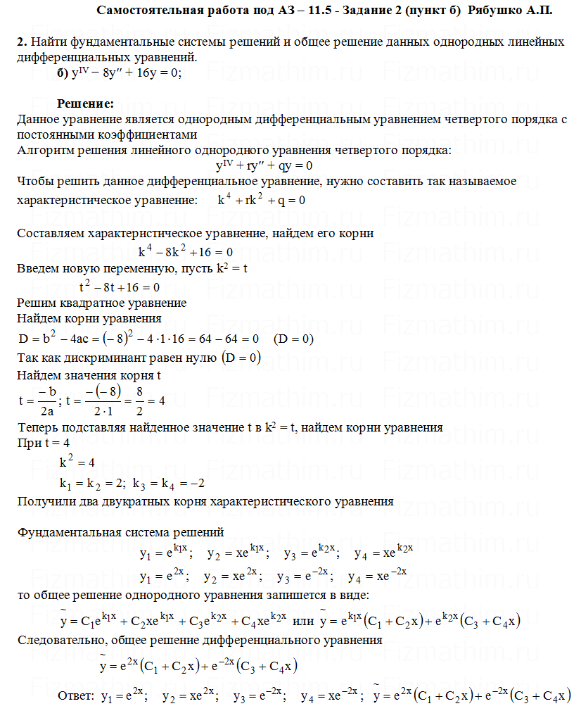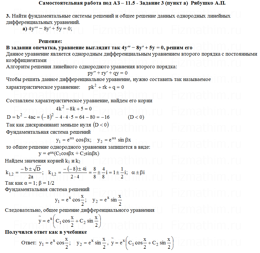 Решенные задания и примеры решений на тему дифференциальные уравнения