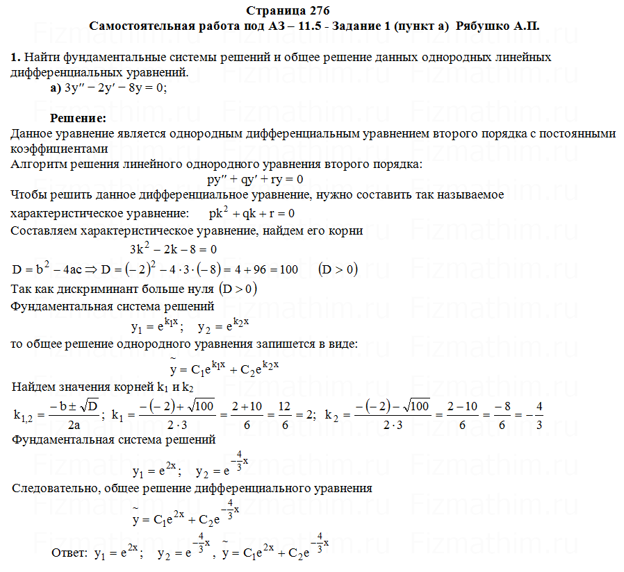 Решенные задания и примеры решений на тему дифференциальные уравнения