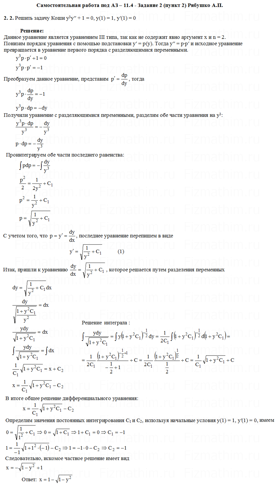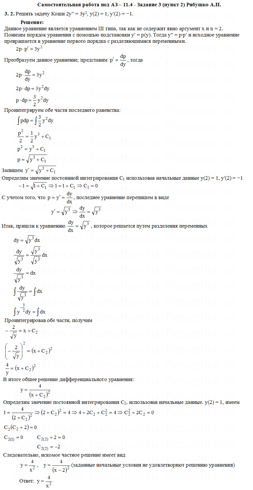 Раздел: Дифференциальные уравнения