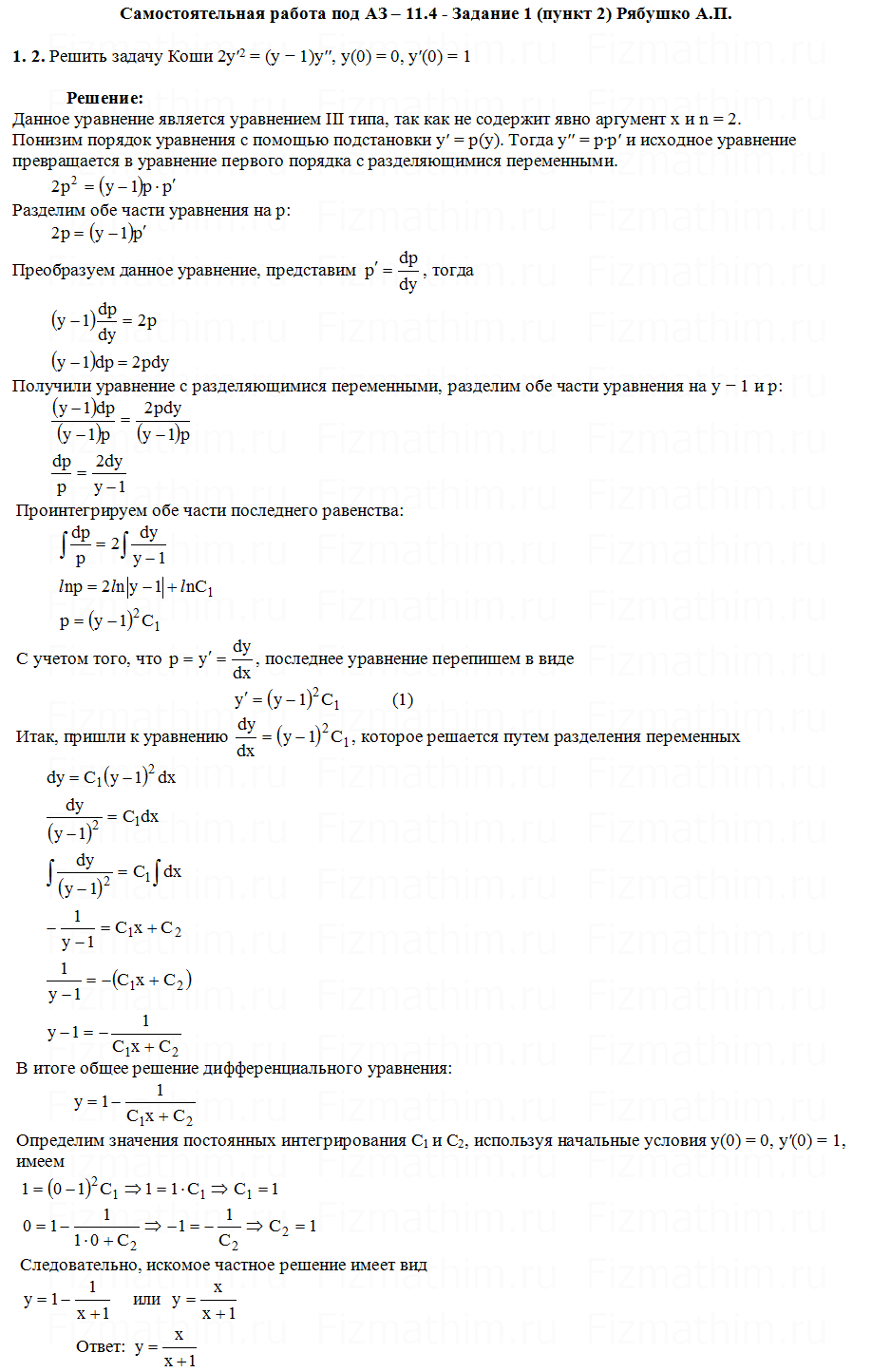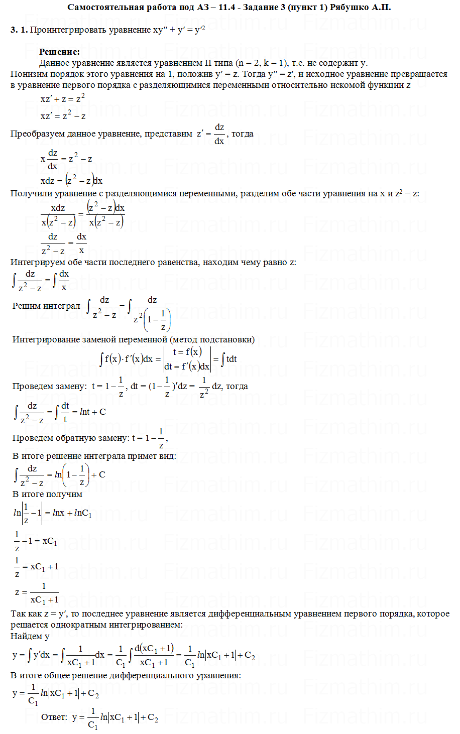 Главная » Фото решений » Дифференциальные уравнения