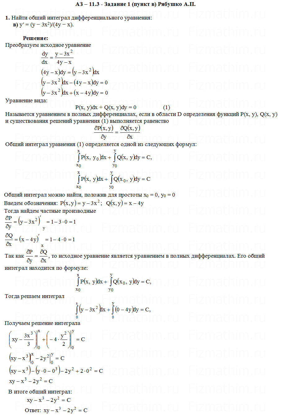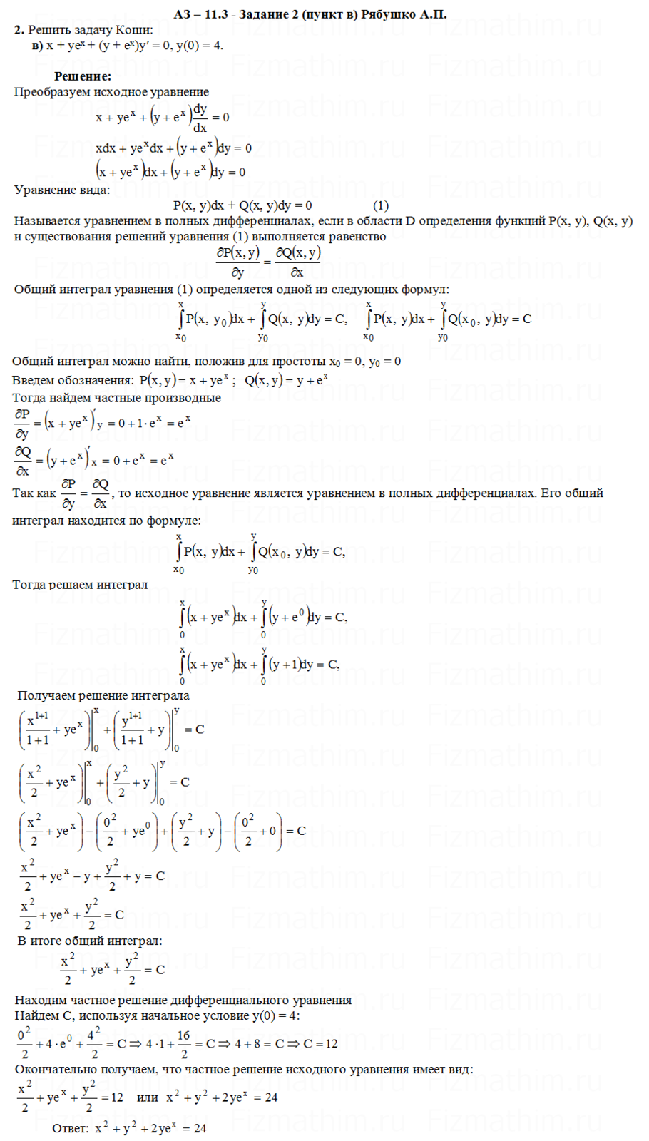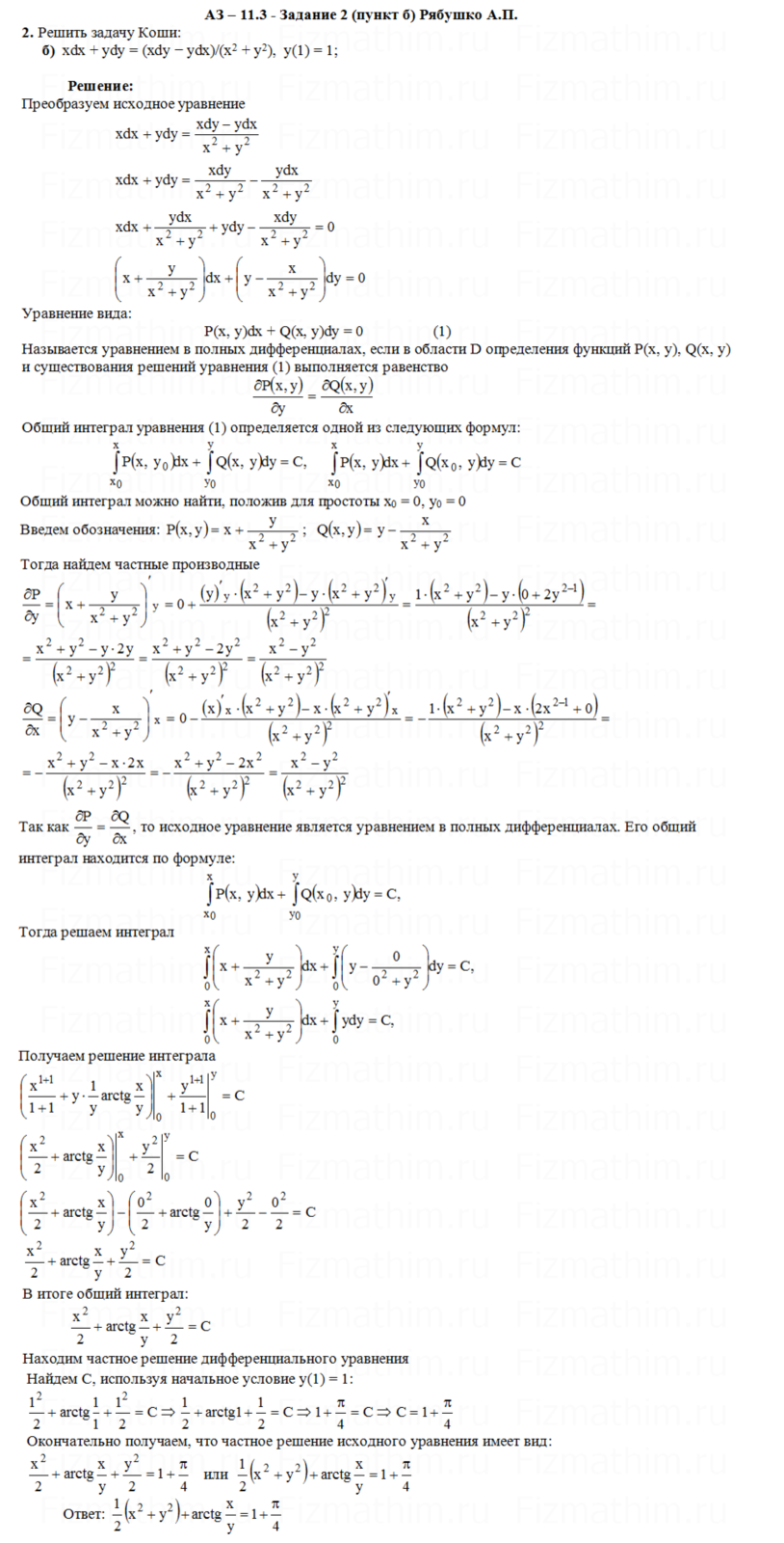 Решенные задания и примеры решений на тему дифференциальные уравнения