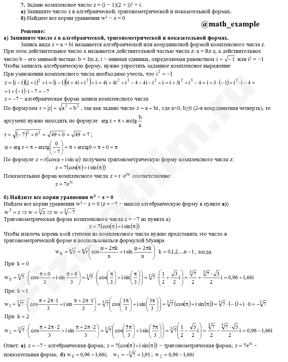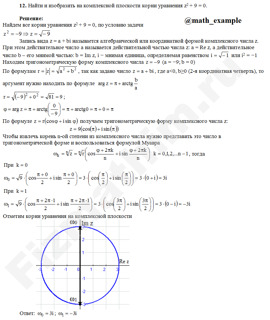 Решенные задания и примеры решений на тему Комплексные числа
