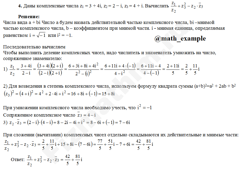 Главная » Фото решений » Комплексные числа » Действия над комплексными числами