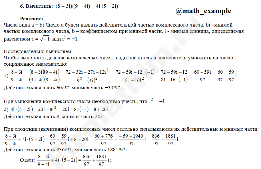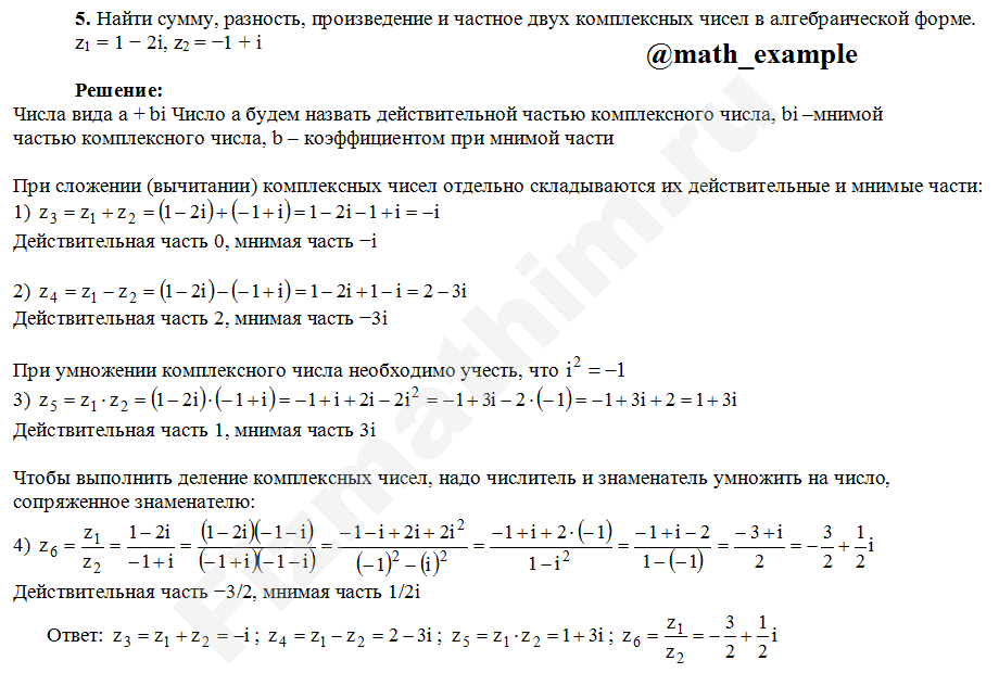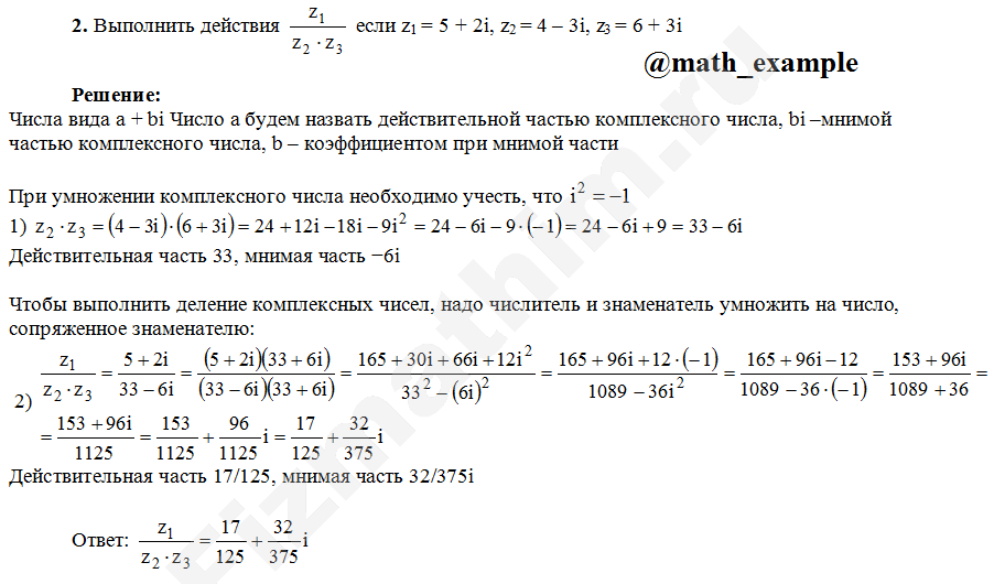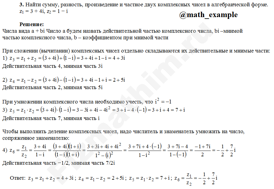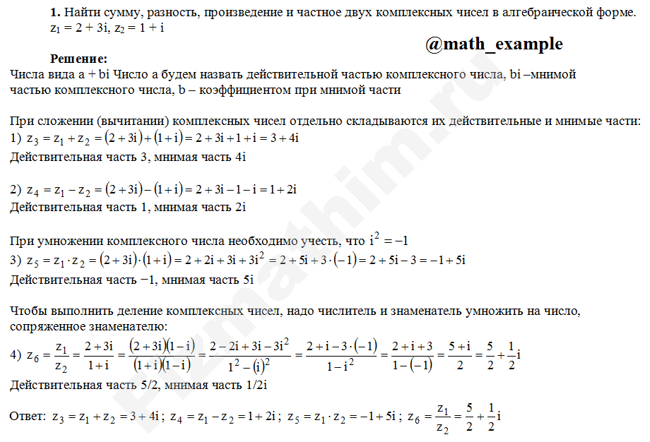 Действия над комплексными числами примеры решений