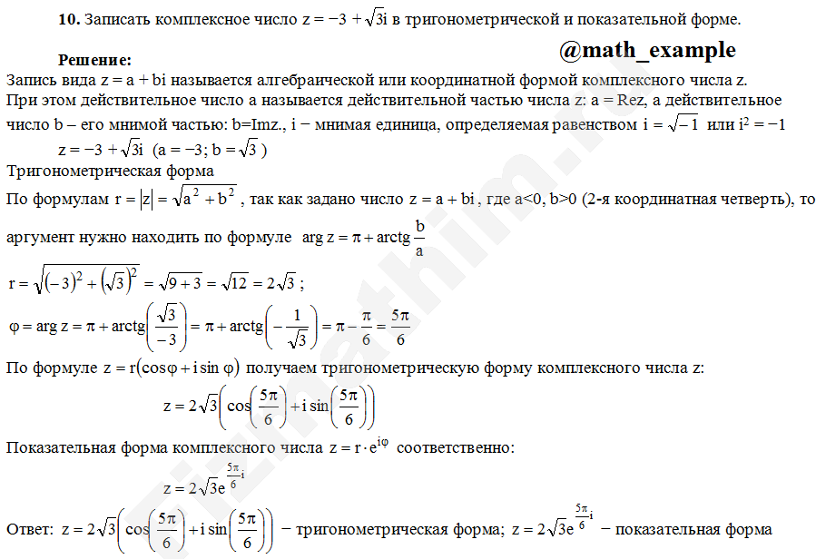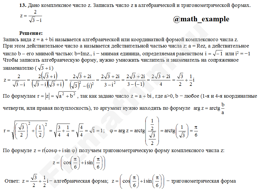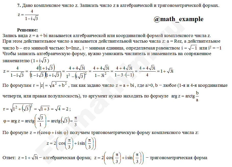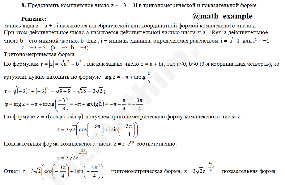 Формы записи комплексных чисел примеры решенийГлавная » Фото решений » Комплексные числа » Формы записи комплексных чисел