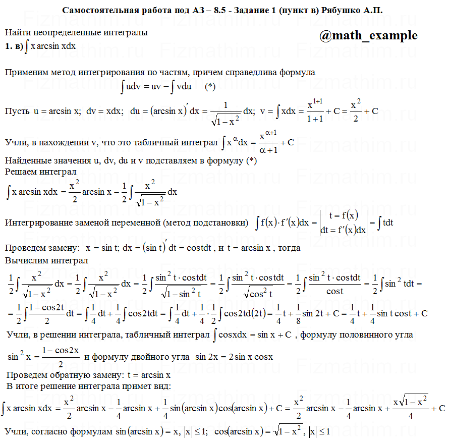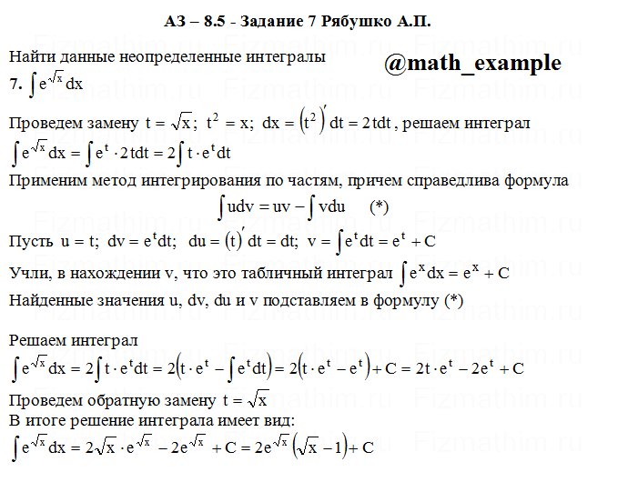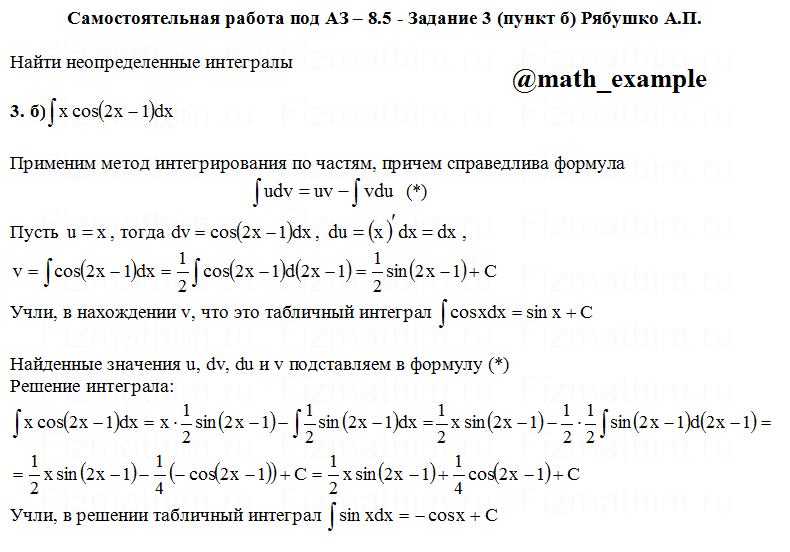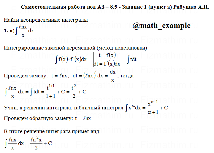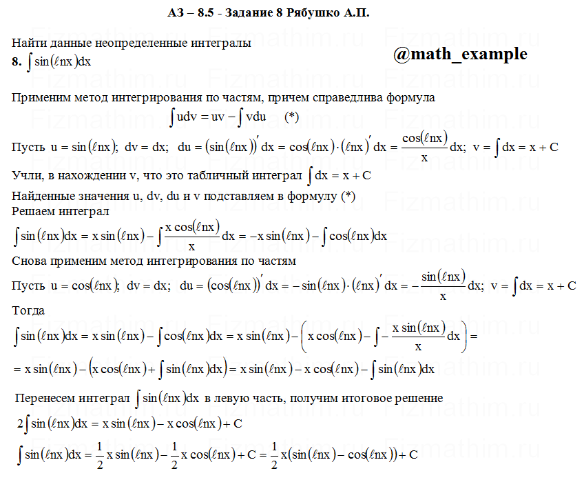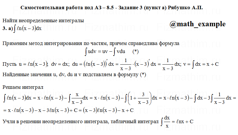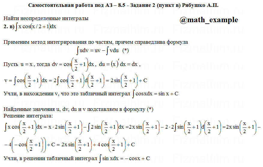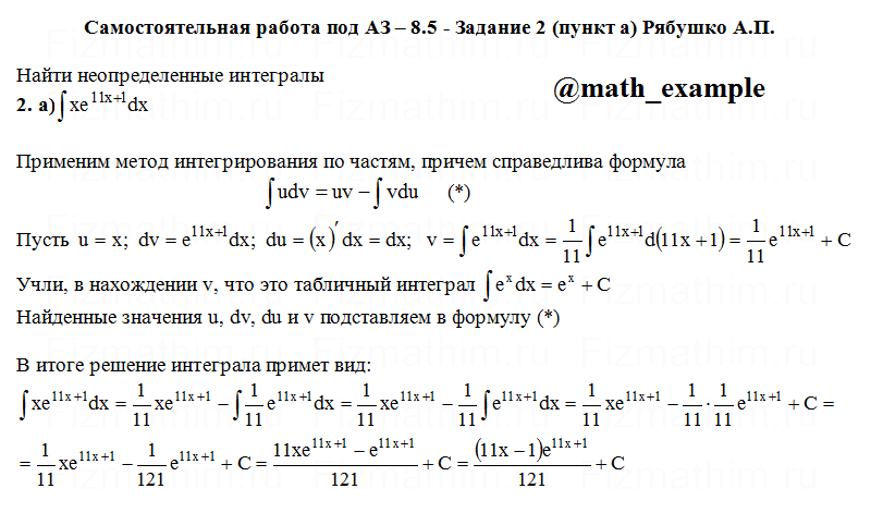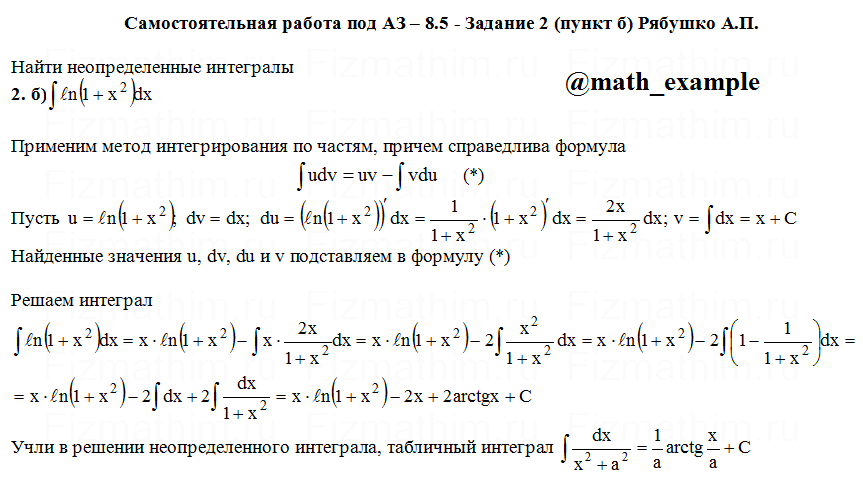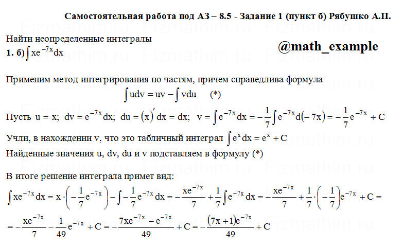 Решенные задания и примеры решений на тему неопределенные интегралы