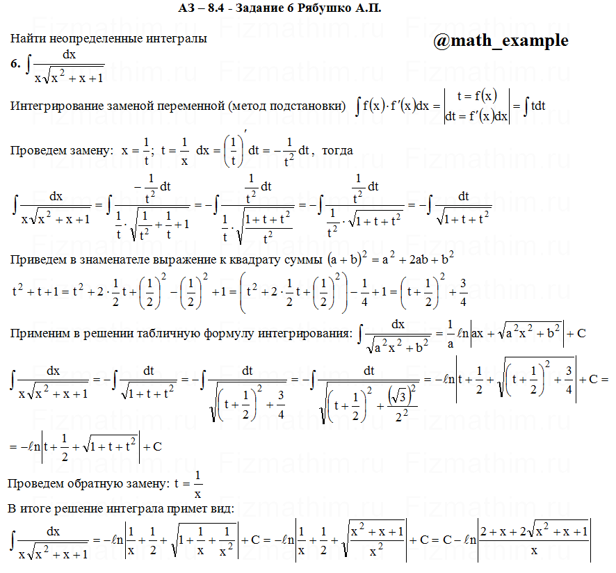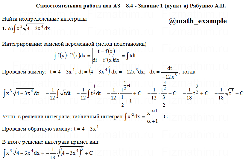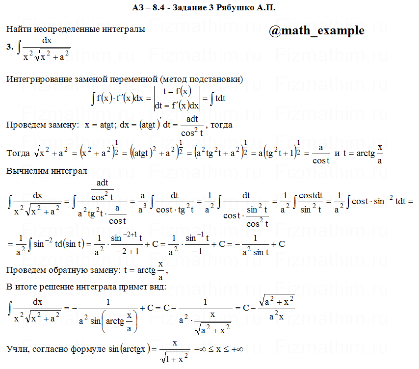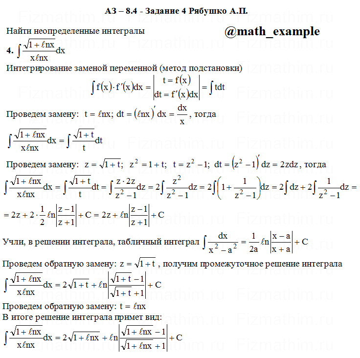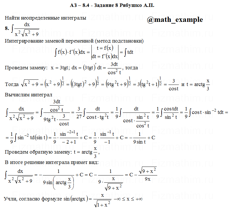 Решенные задания и примеры решений на тему неопределенные интегралы