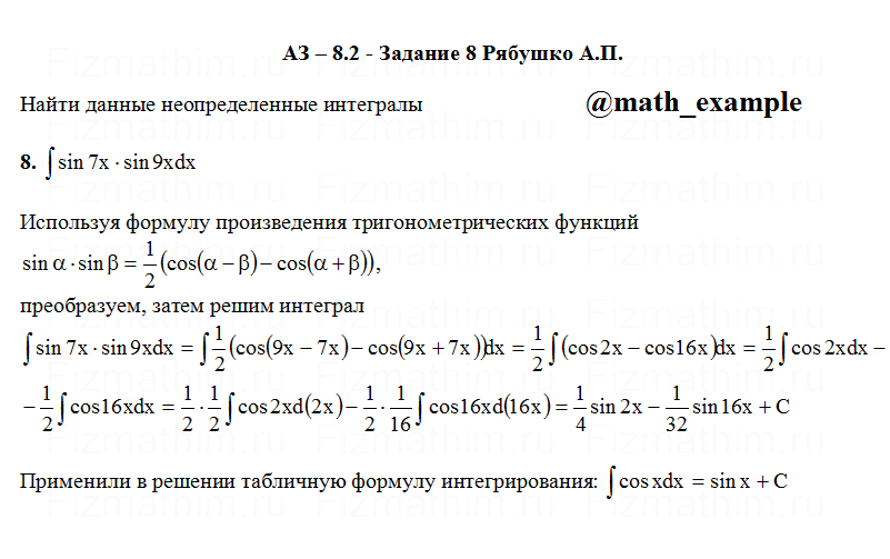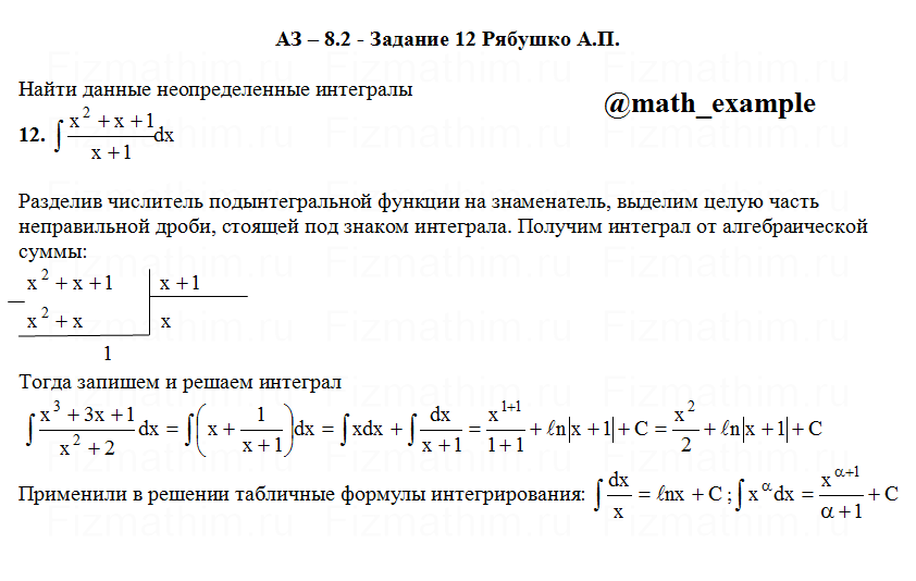 Главная » Фото решений » Неопределенные интегралы