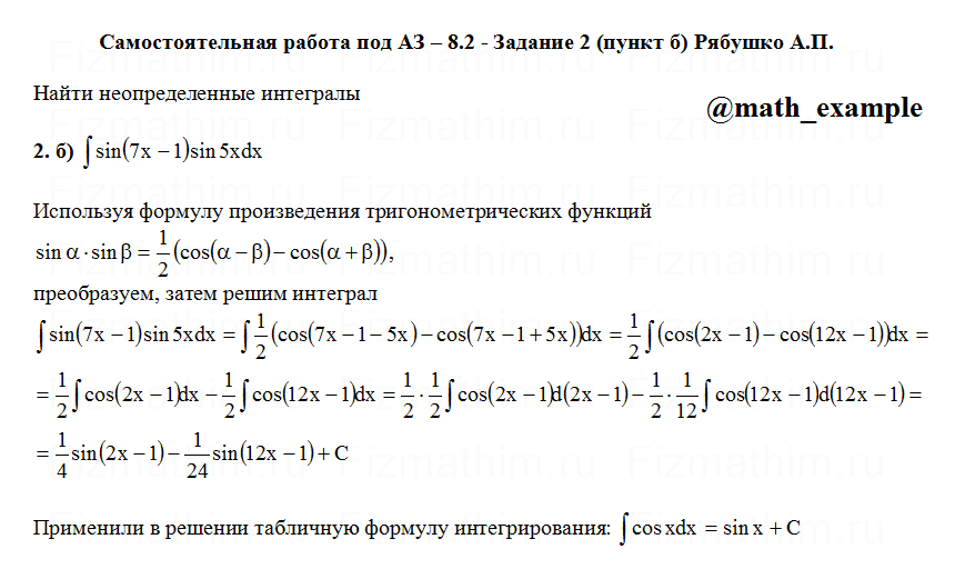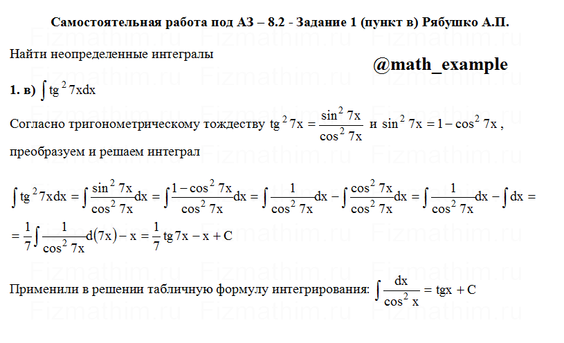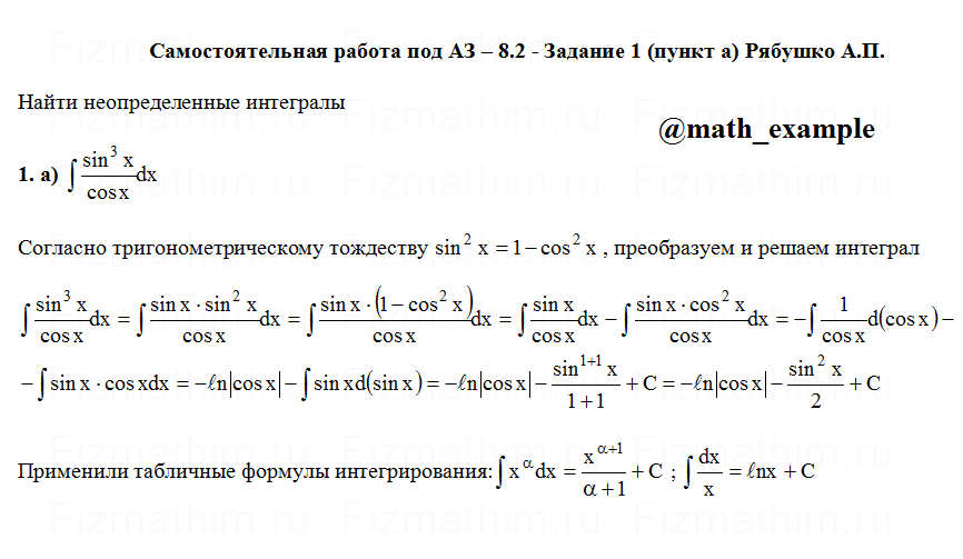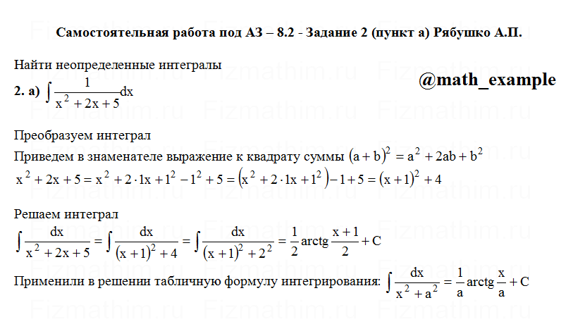 Решенные задания и примеры решений на тему неопределенные интегралы