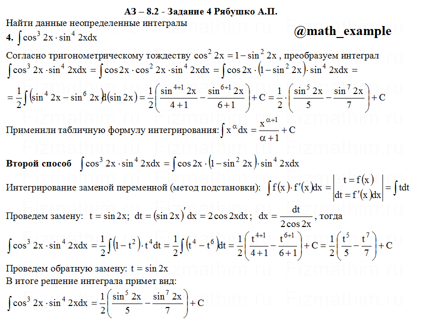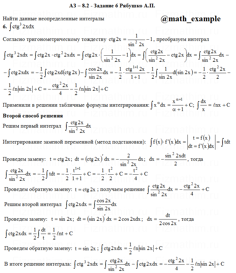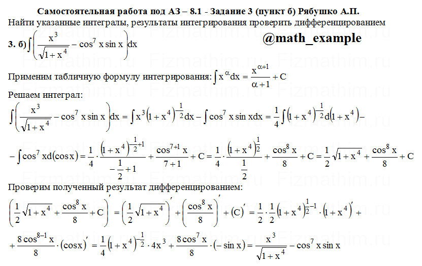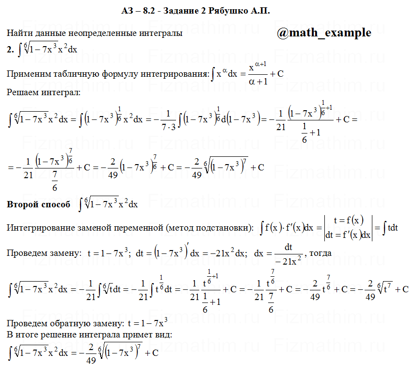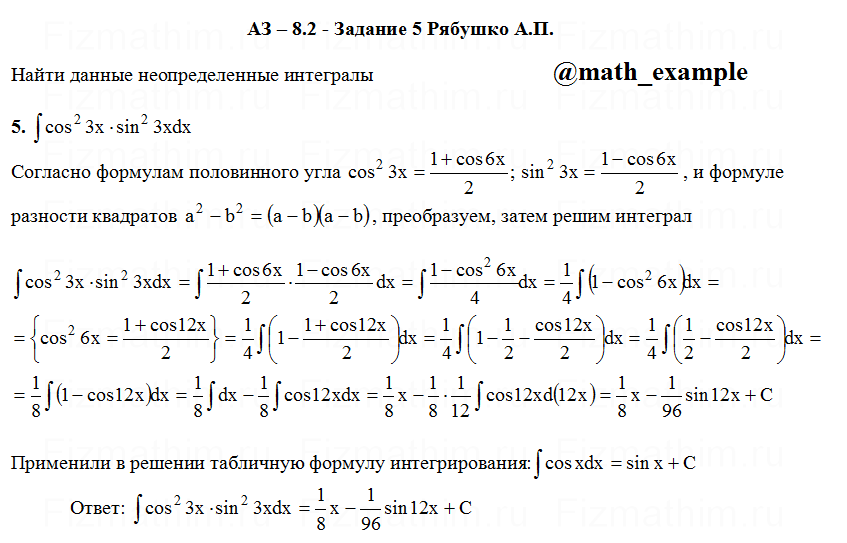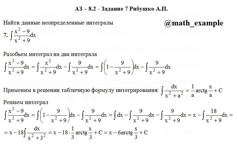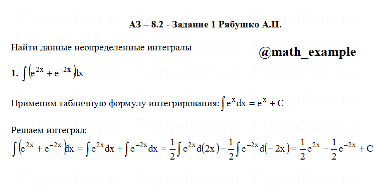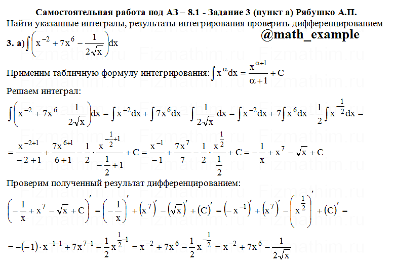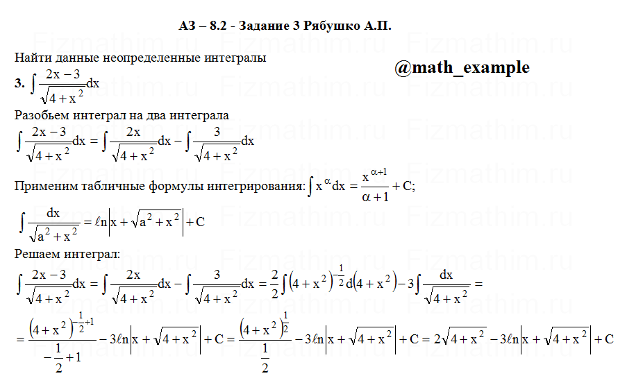 Решенные задания и примеры решений на тему неопределенные интегралы