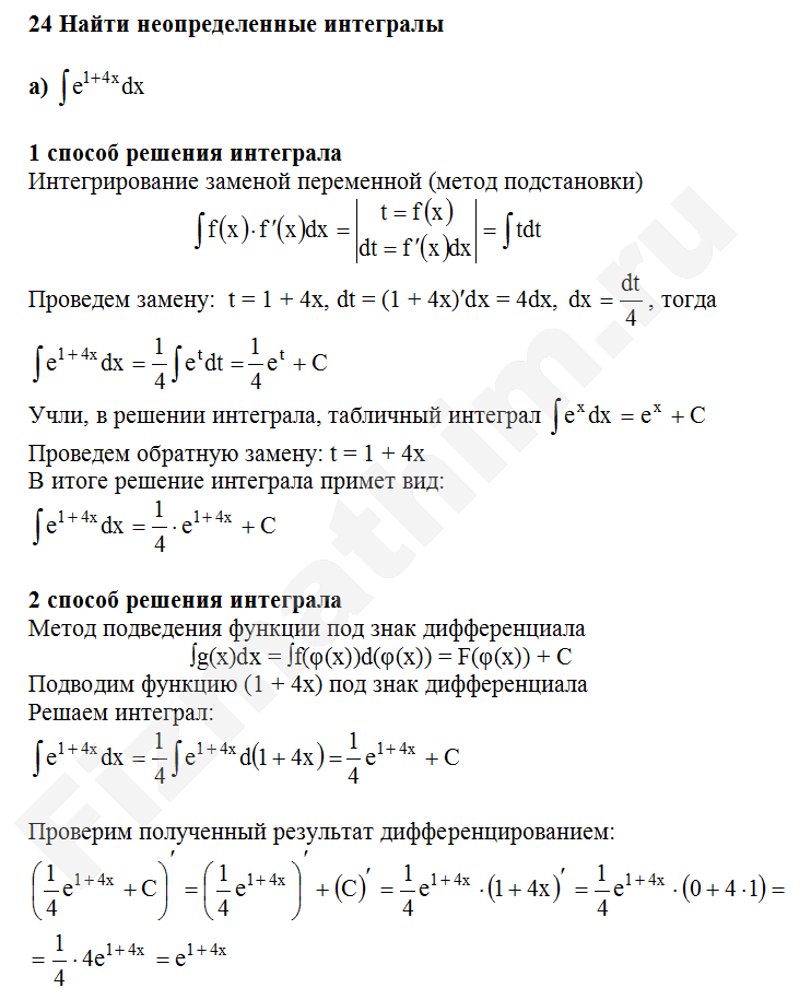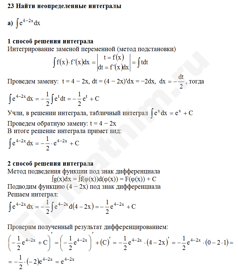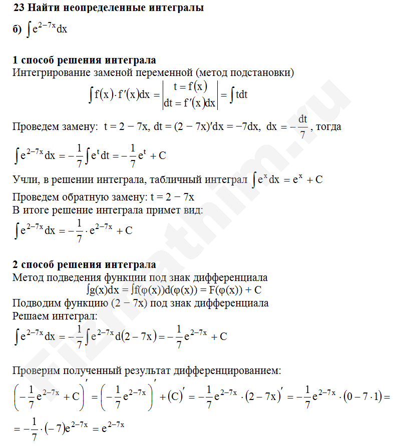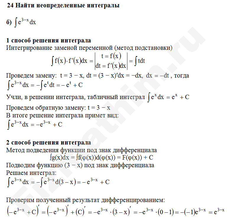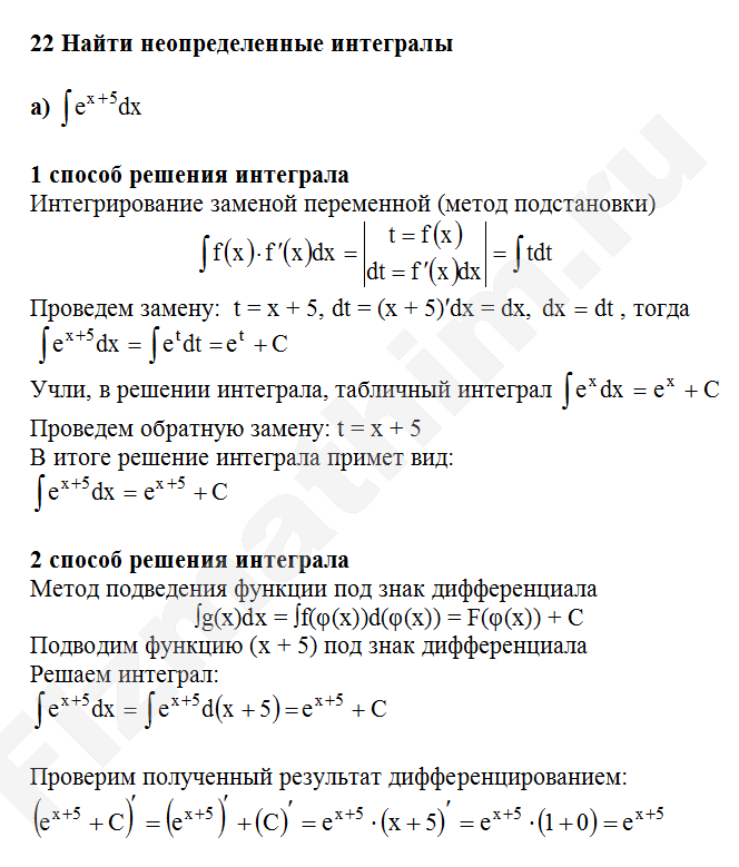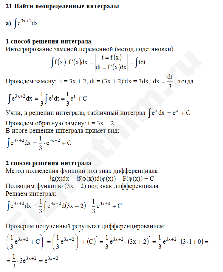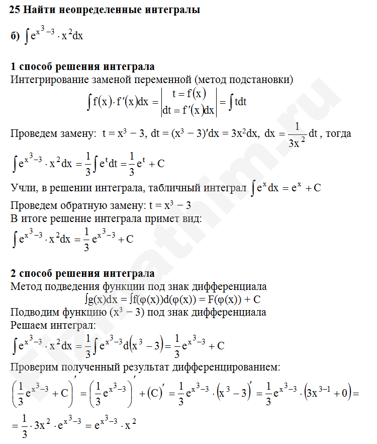Решенные задания и примеры решений на тему неопределенные интегралы