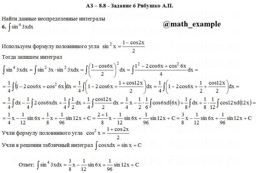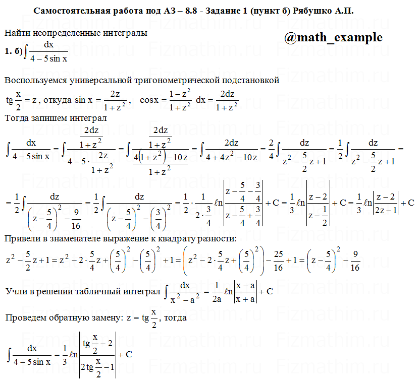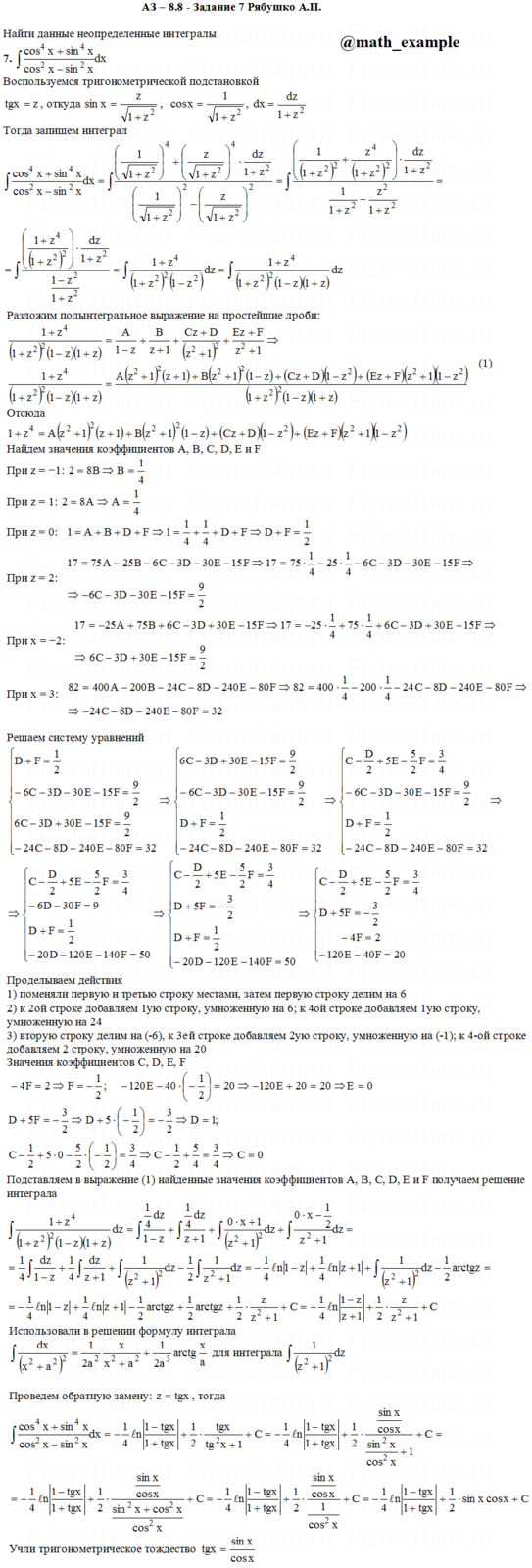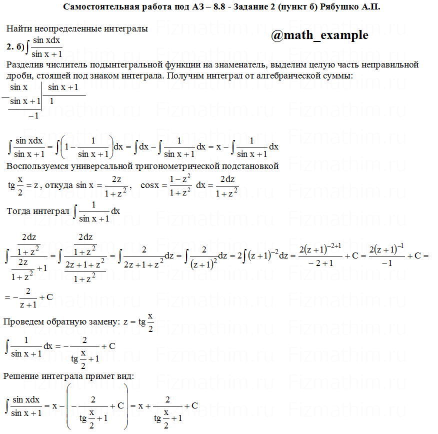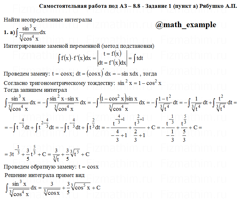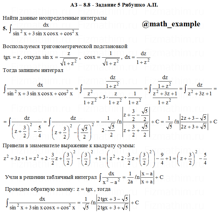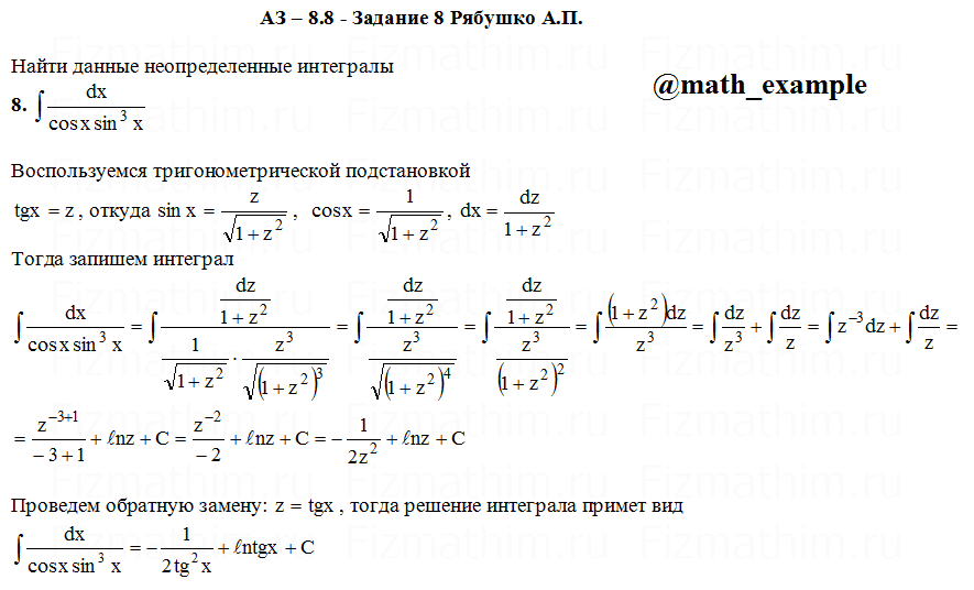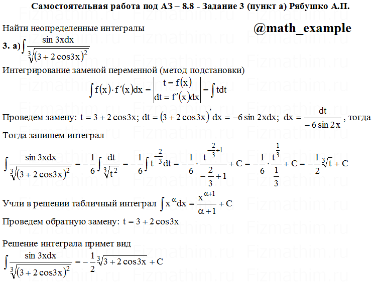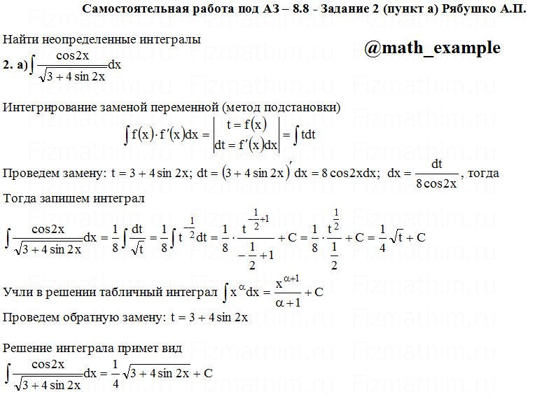 Решенные задания и примеры решений на тему неопределенные интегралы
