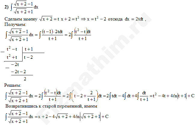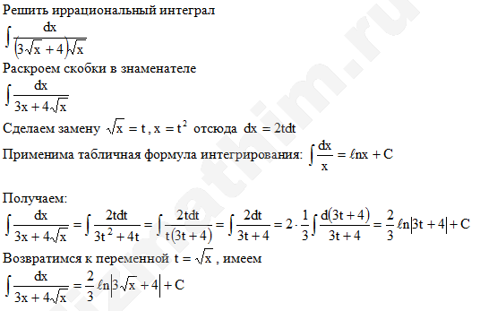 Интегрирование иррациональных функций примеры решенийГлавная » Фото решений » Неопределенные интегралы » Интегрирование иррациональных функций