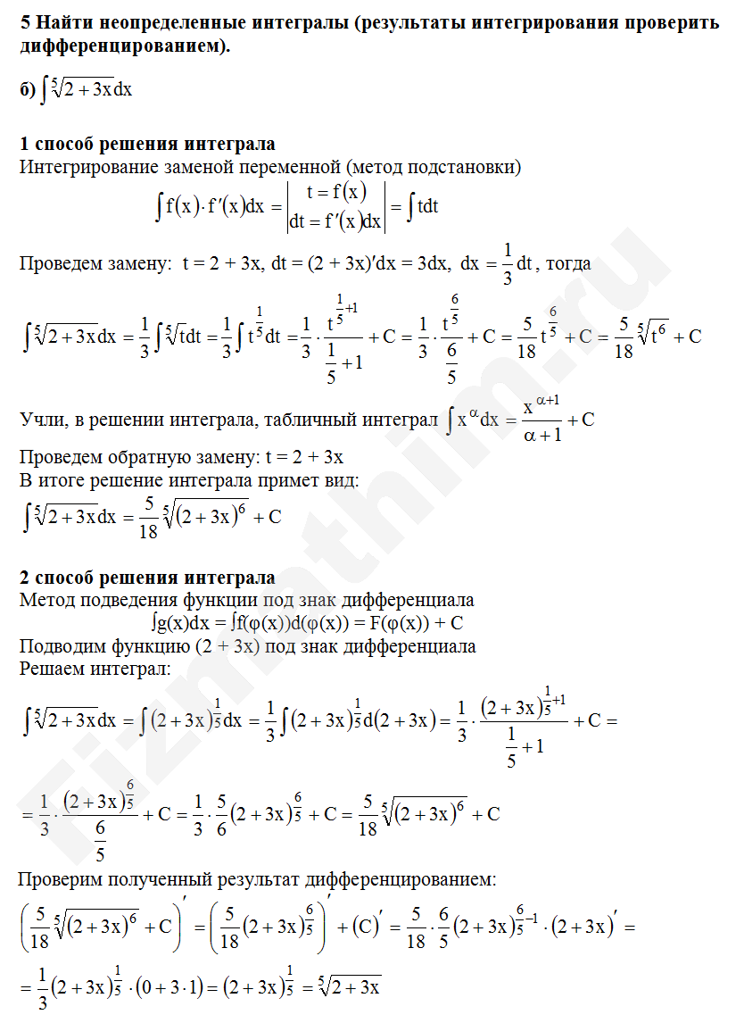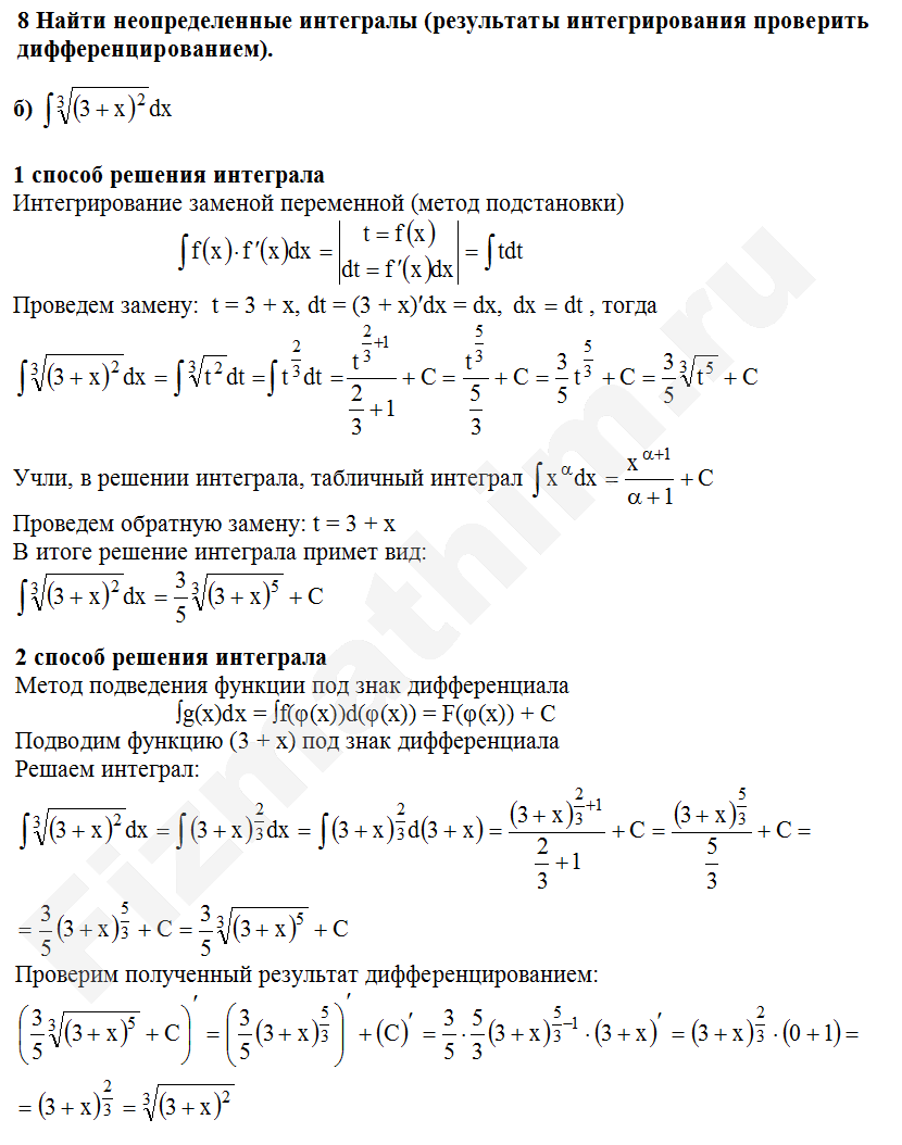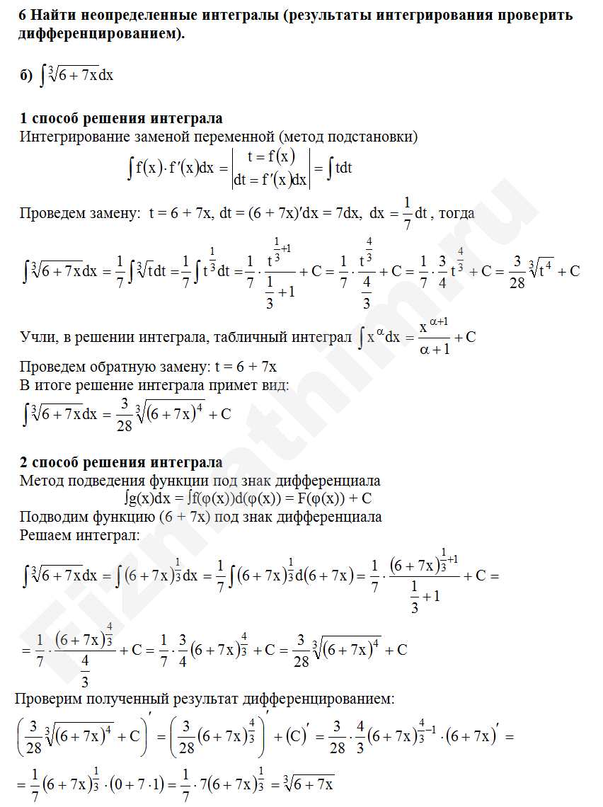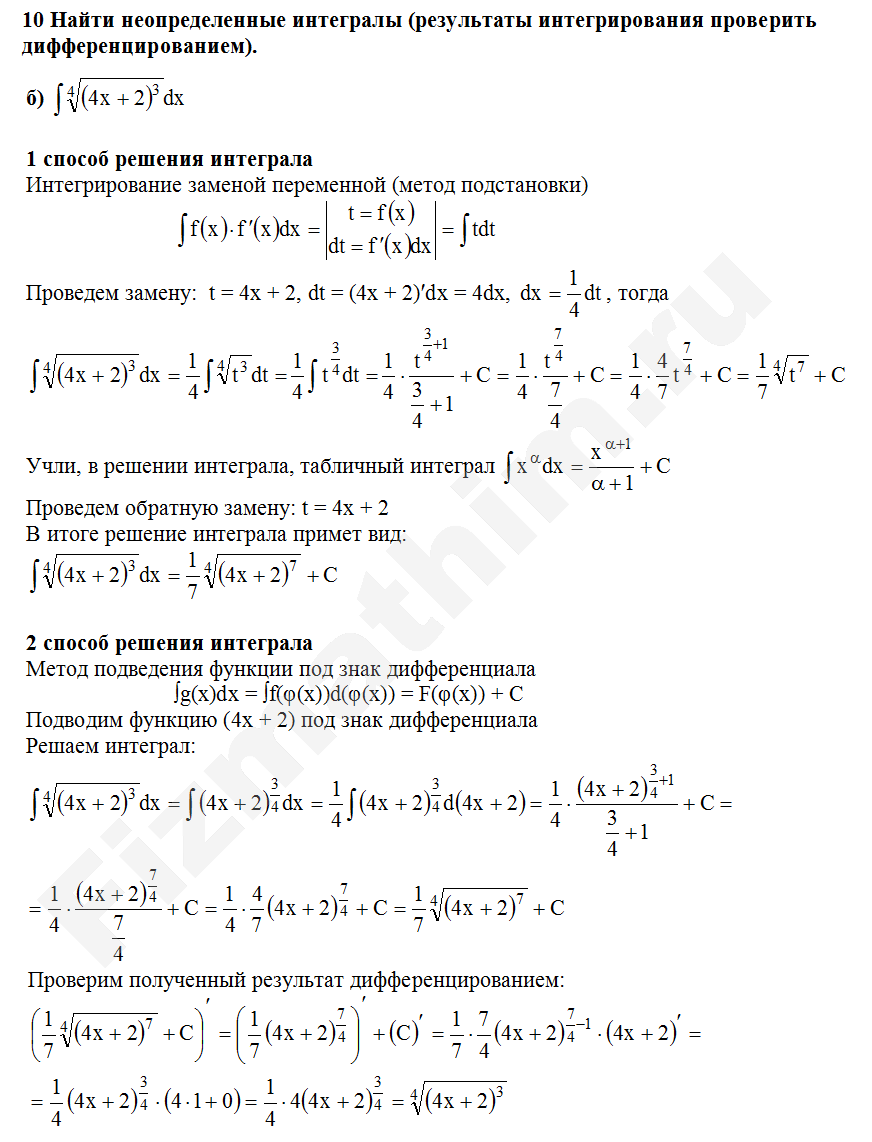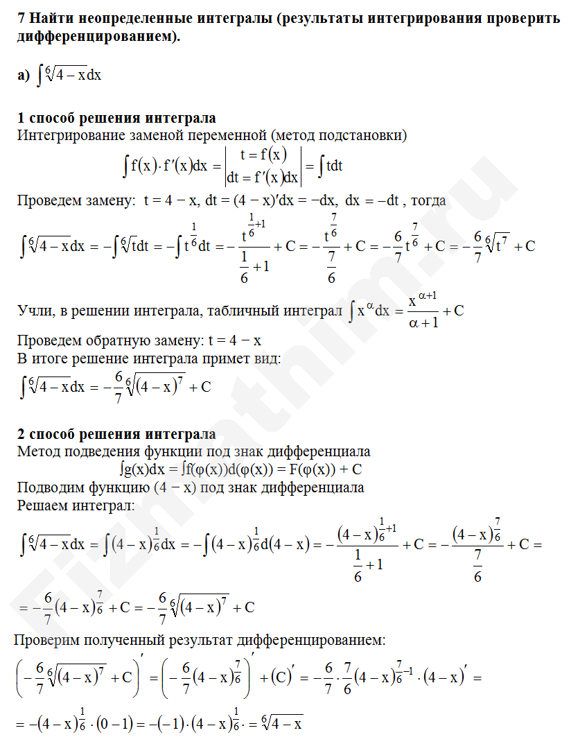Интегрирование заменой переменной (подстановкой) примеры решений