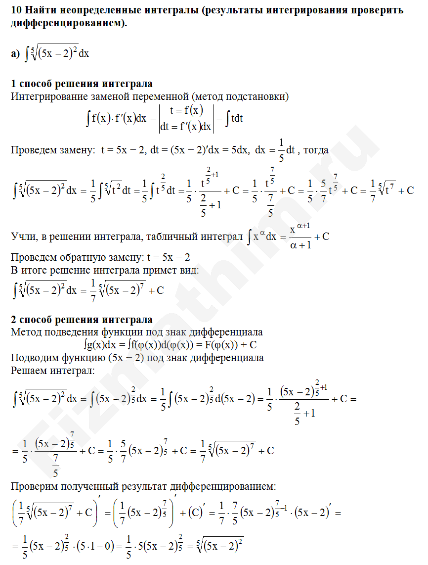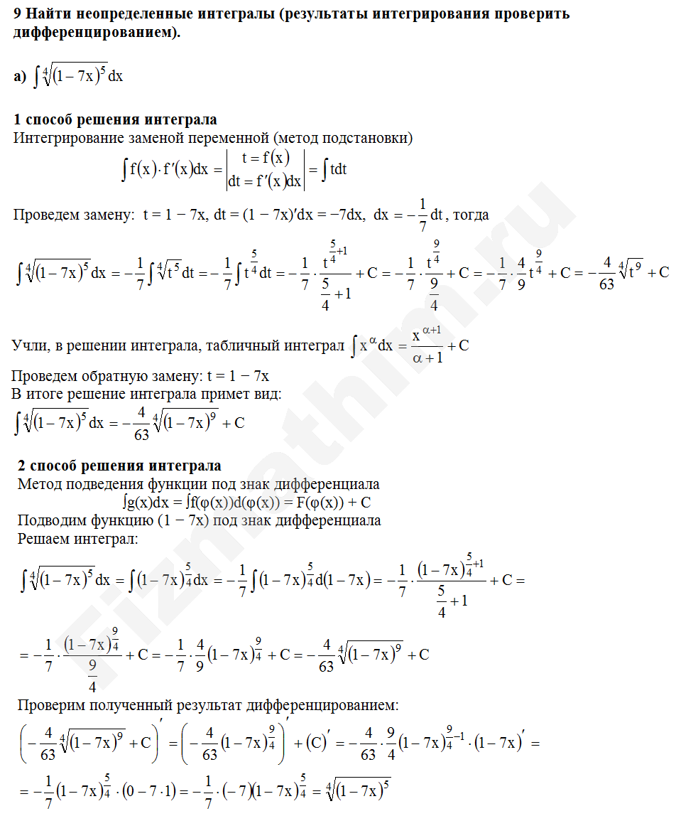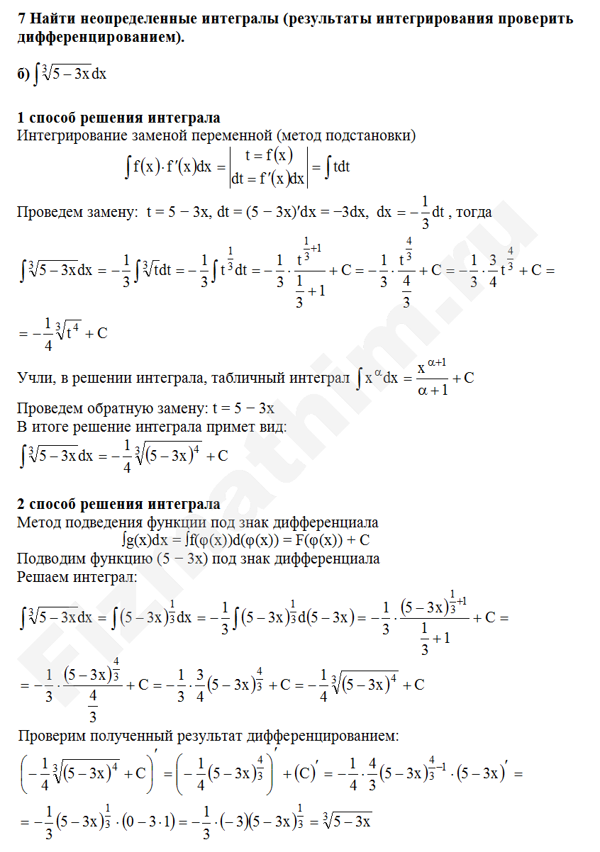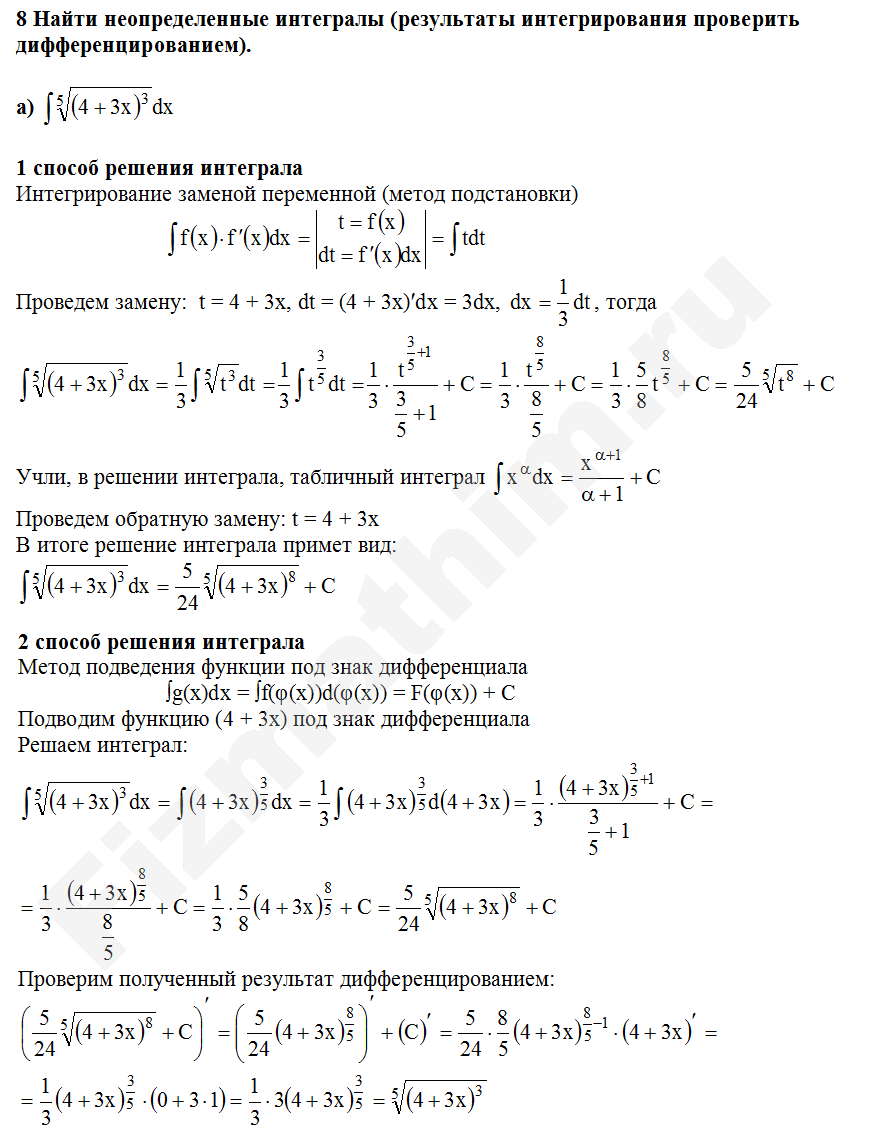 Интегрирование заменой переменной (подстановкой) примеры решений