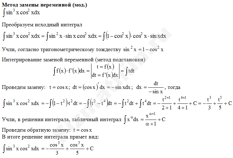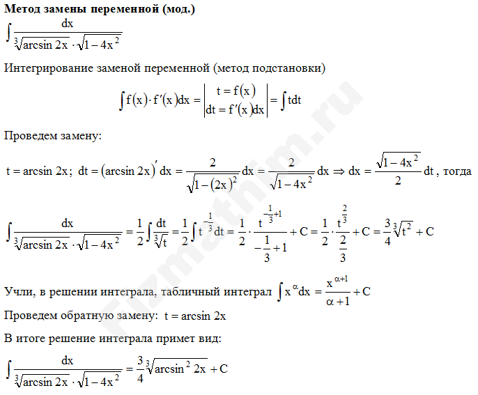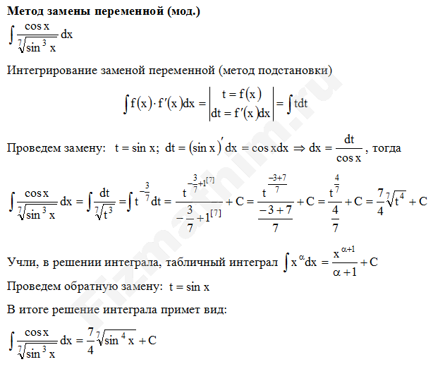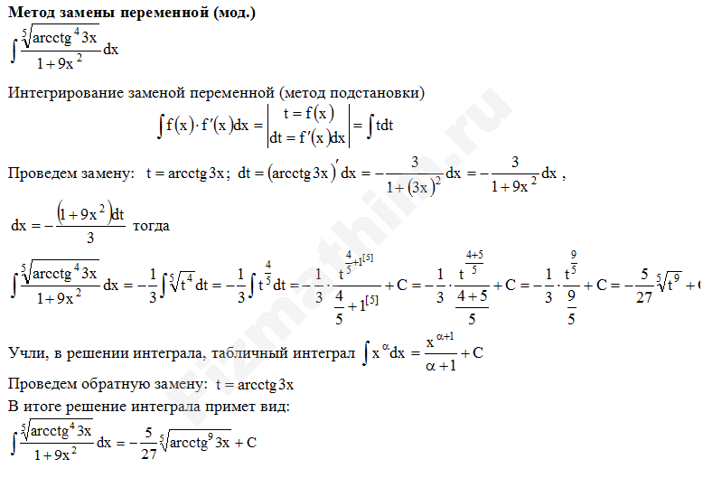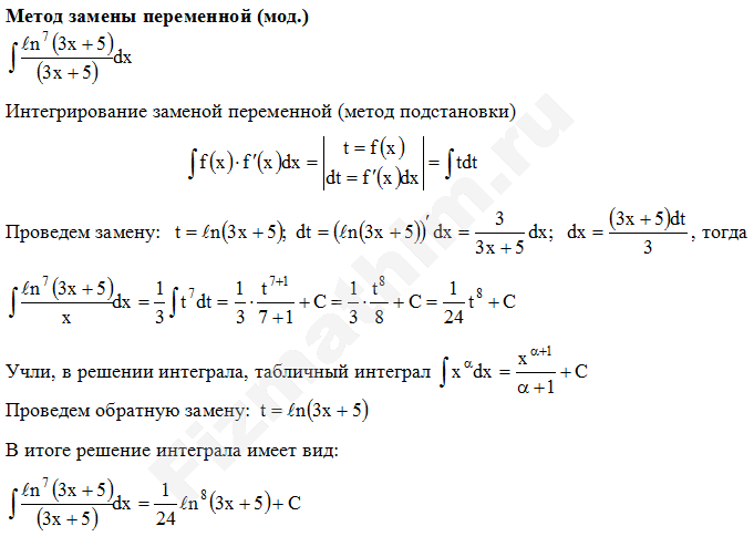 Интегрирование заменой переменной (подстановкой) примеры решений