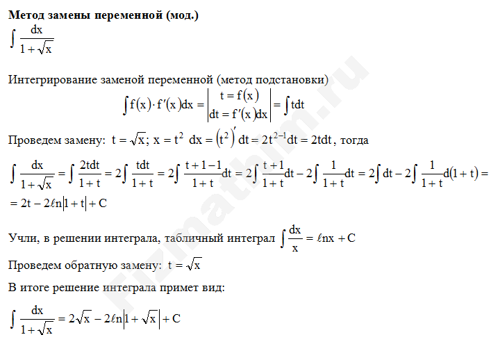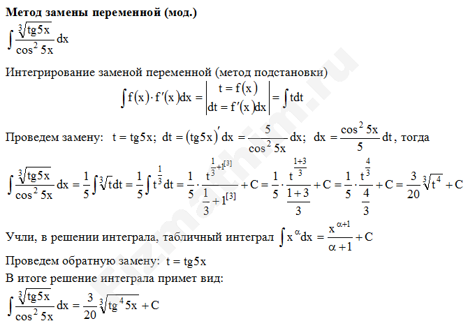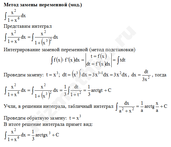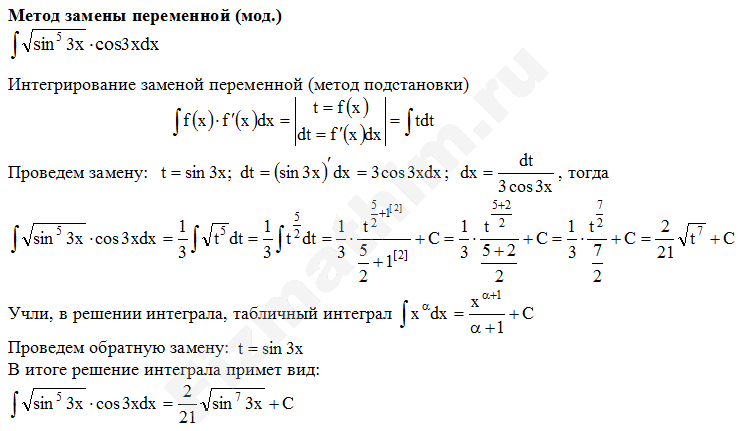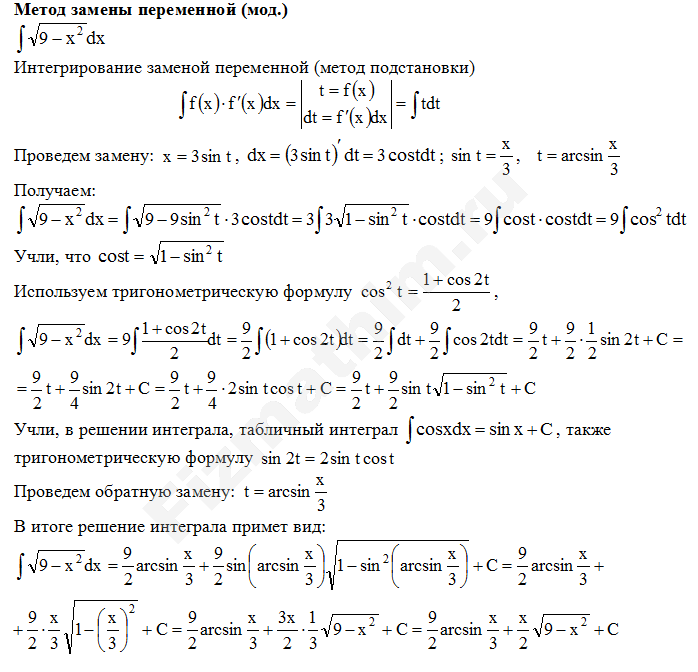 Интегрирование заменой переменной (подстановкой) примеры решений