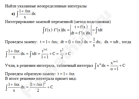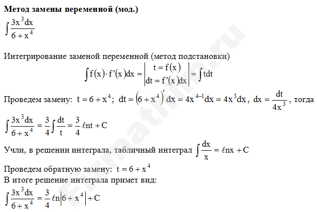 Интегрирование заменой переменной (подстановкой) примеры решений