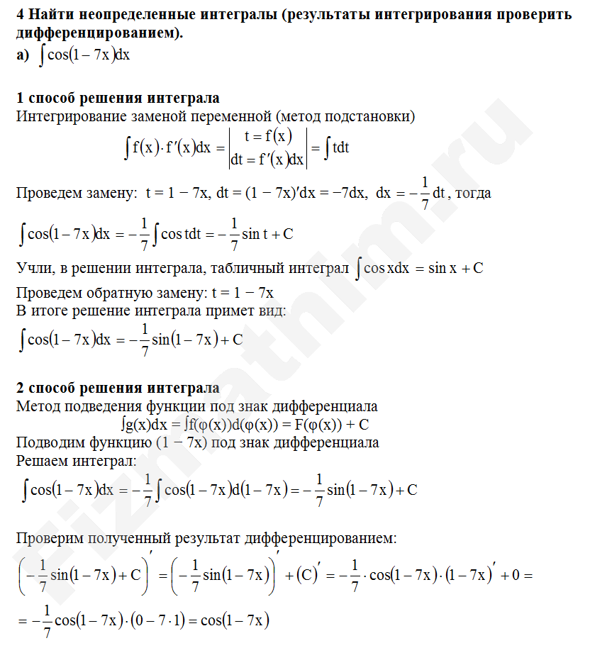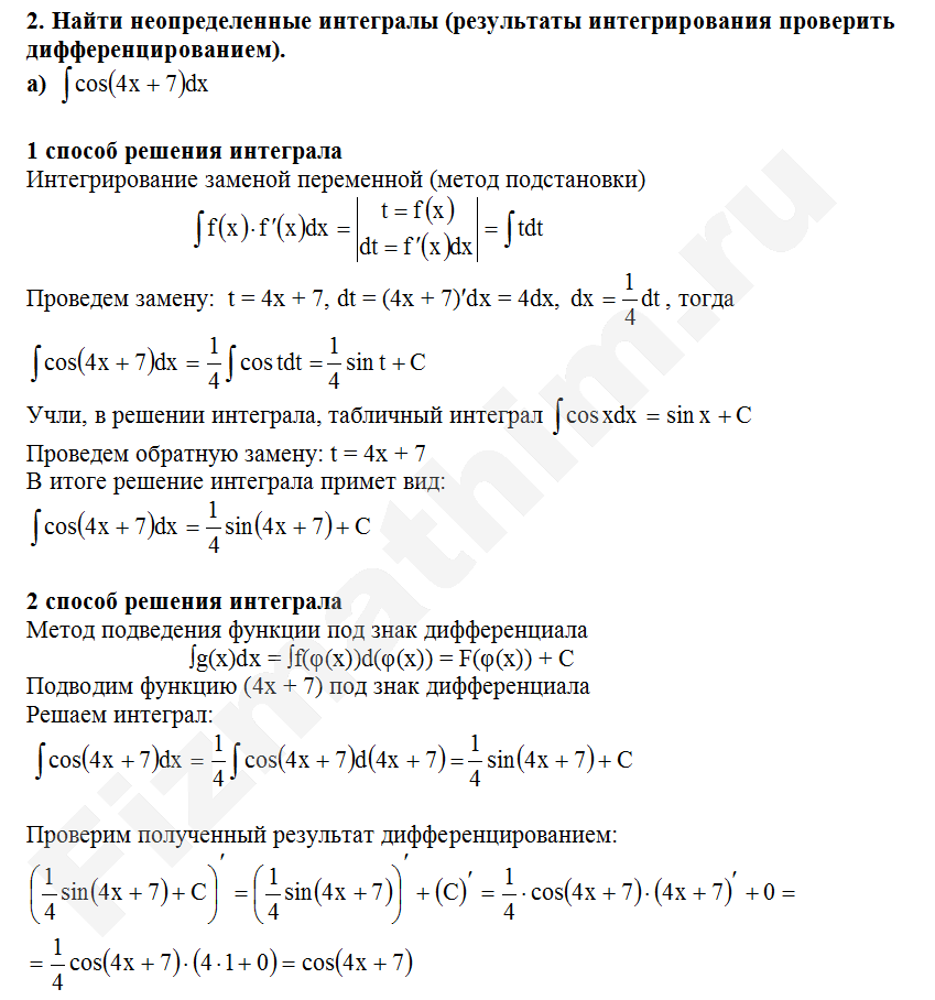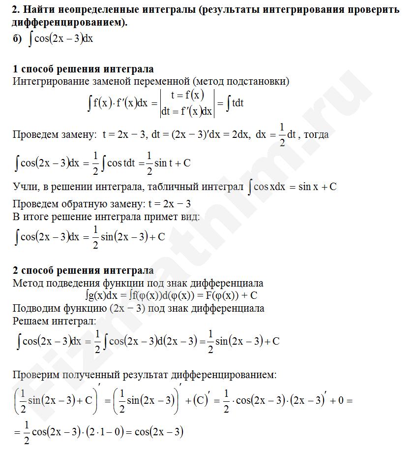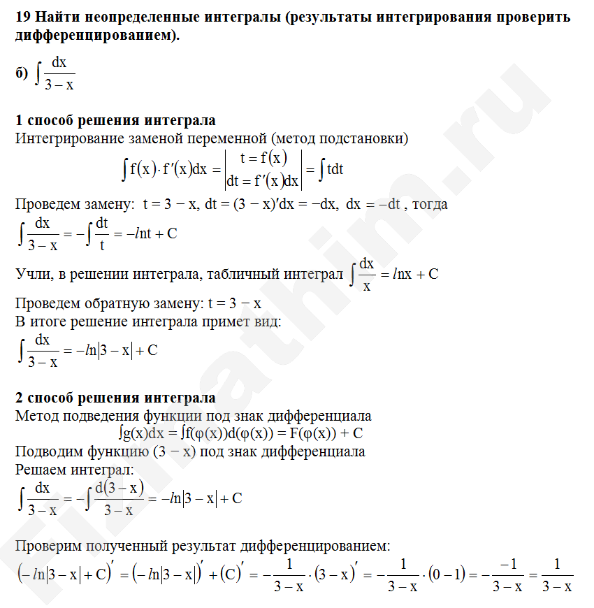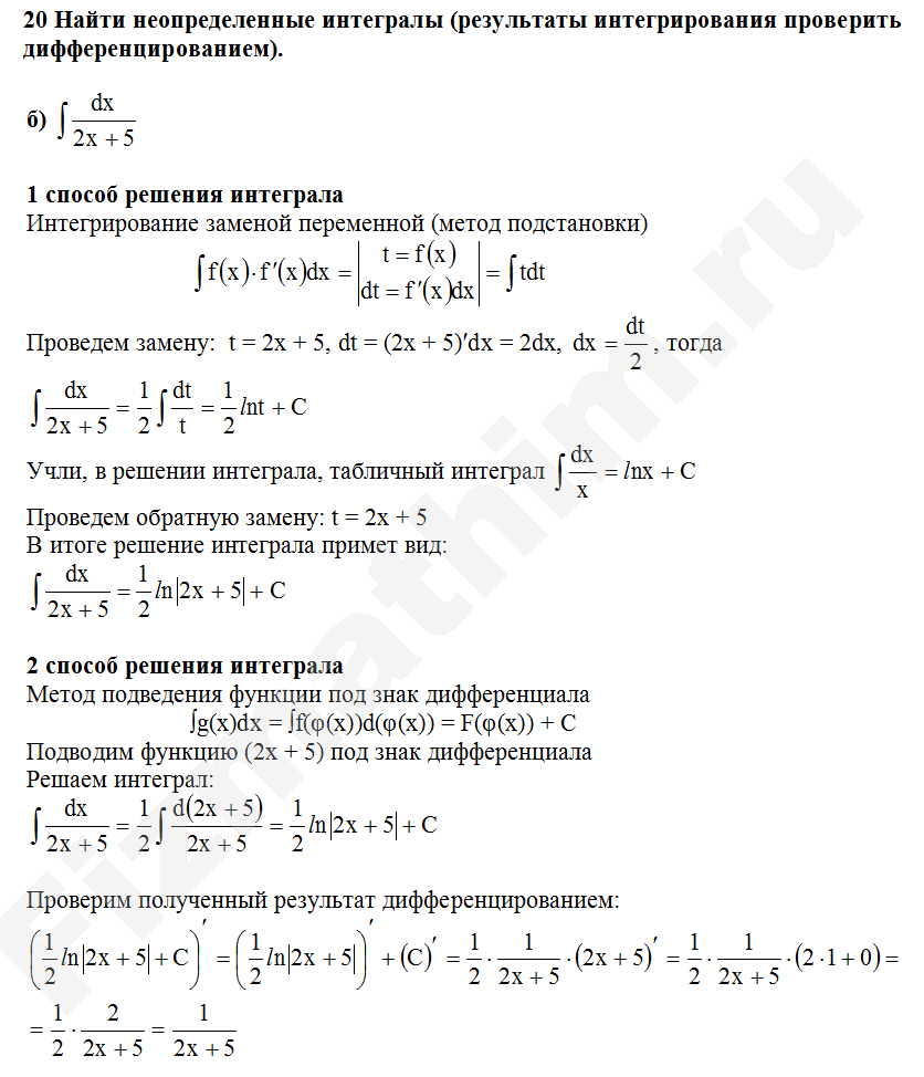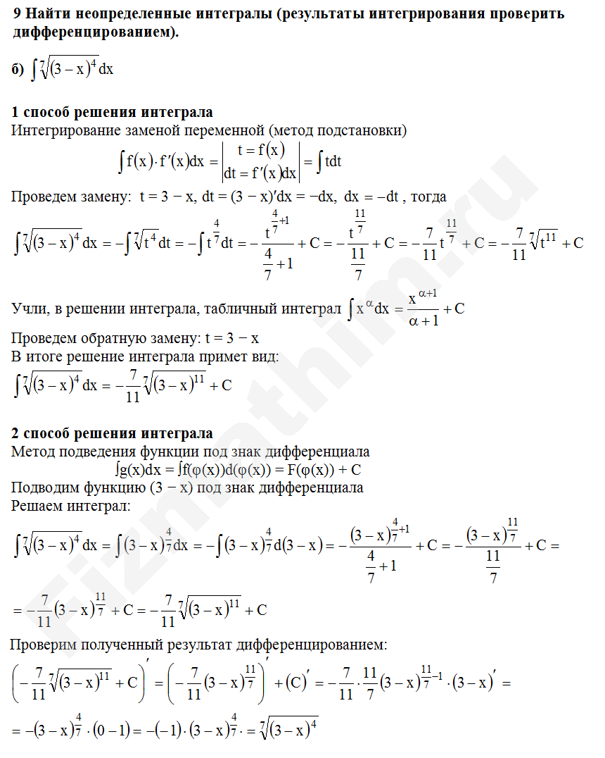 Интегрирование заменой переменной (подстановкой) примеры решений