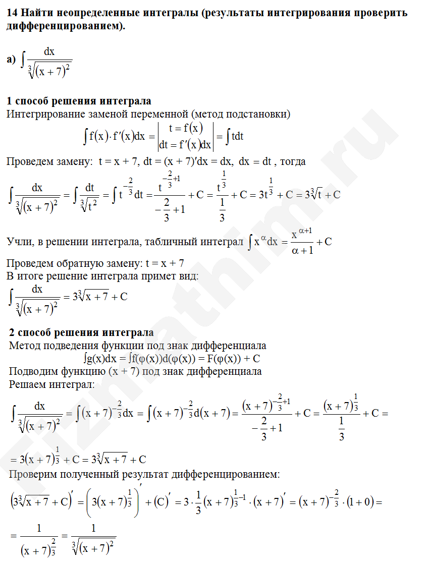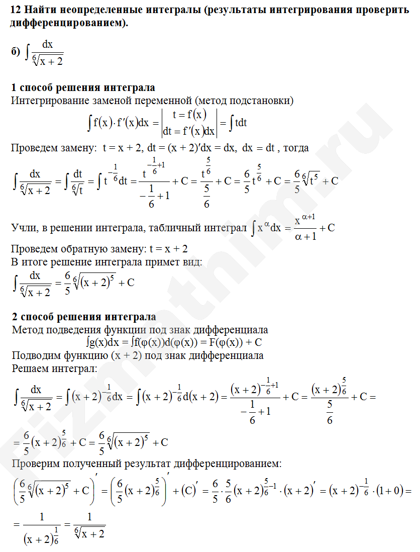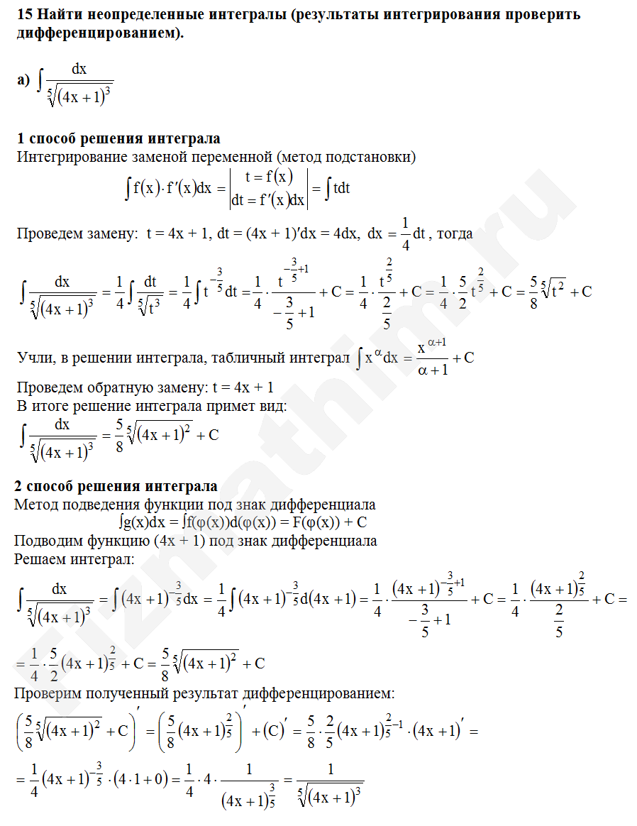 Интегрирование заменой переменной (подстановкой) примеры решений