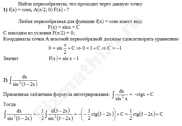 Первообразная функции и неопределенный интеграл примеры решенийГлавная » Фото решений » Неопределенные интегралы » Первообразная функции и неопределенный интеграл