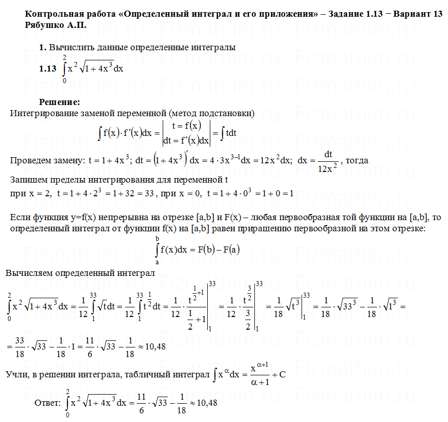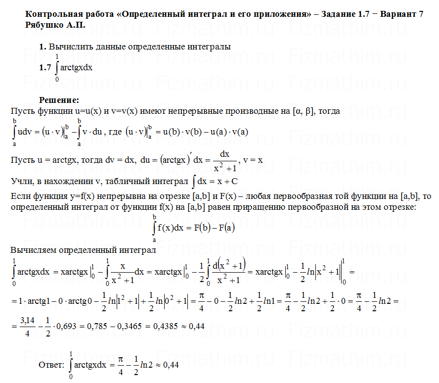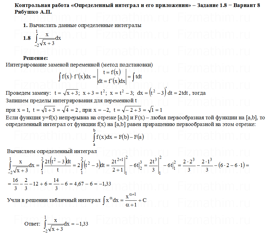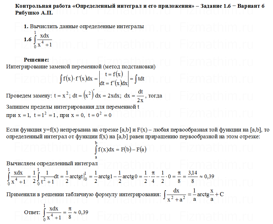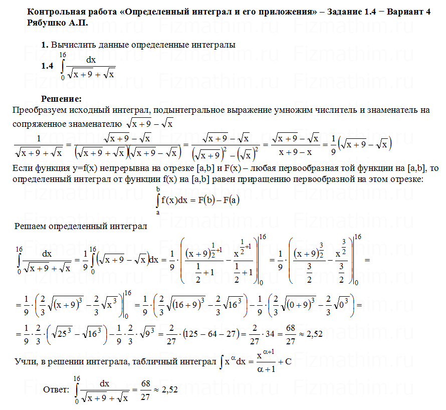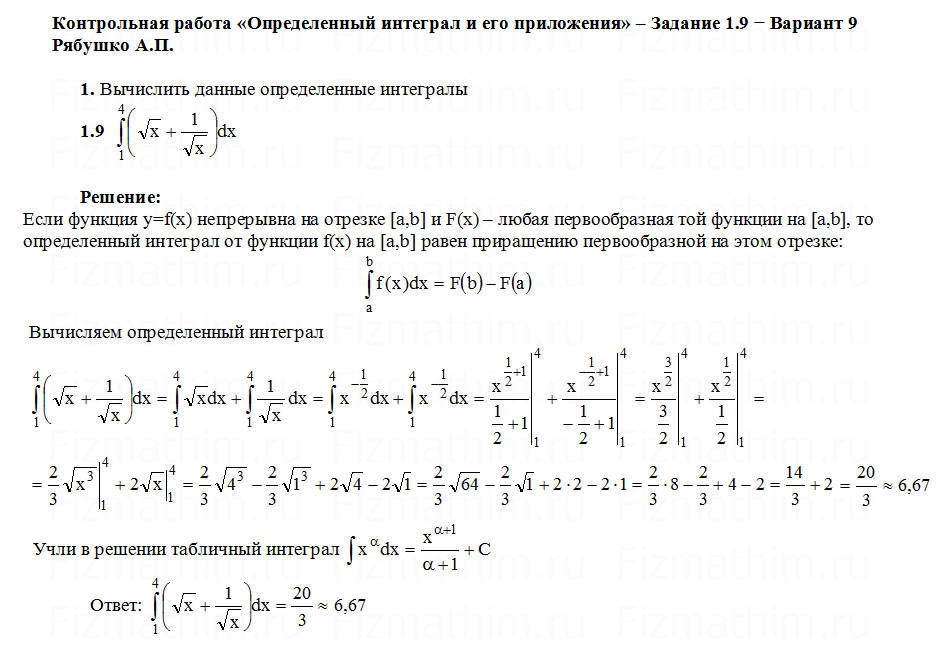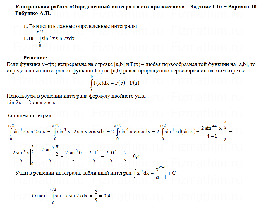 Решенные задания и примеры решений на тему определенные интегралы и приложения
