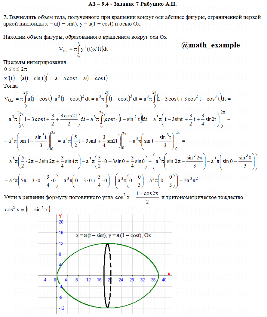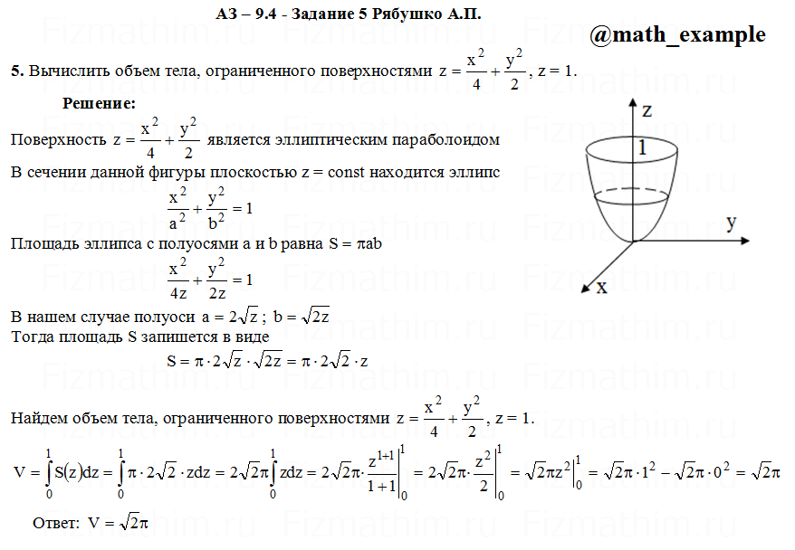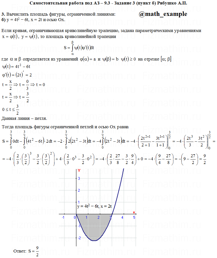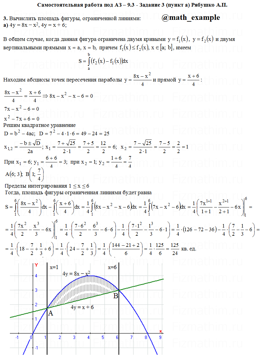 Решенные задания и примеры решений на тему определенные интегралы и приложения