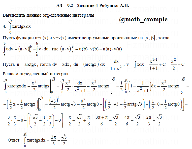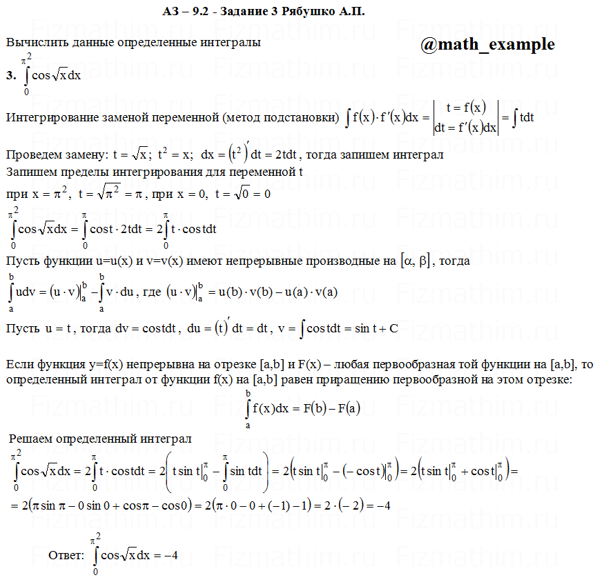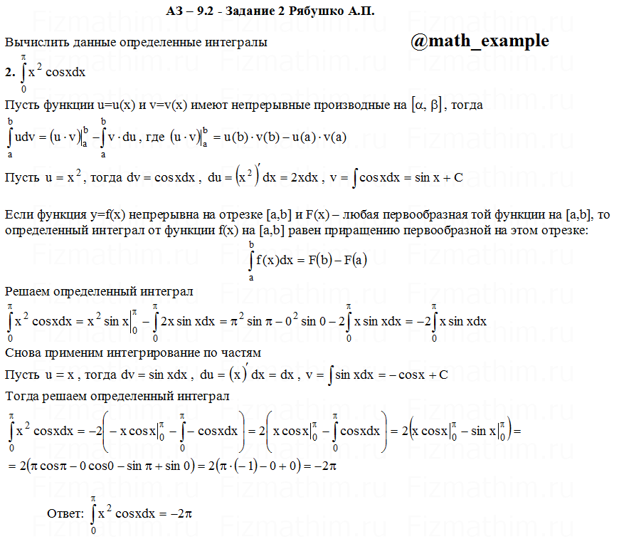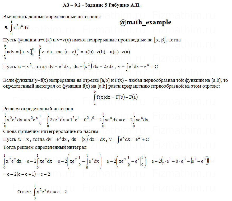 Решенные задания и примеры решений на тему определенные интегралы и приложения