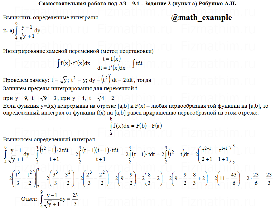 Решенные задания и примеры решений на тему определенные интегралы и приложения