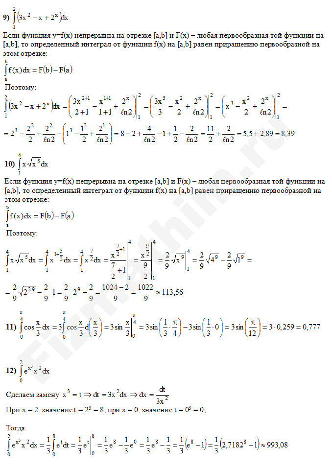 Решенные задания и примеры решений на тему определенные интегралы и приложения