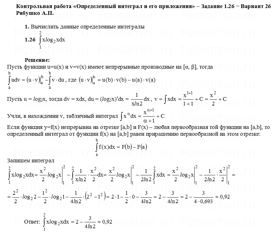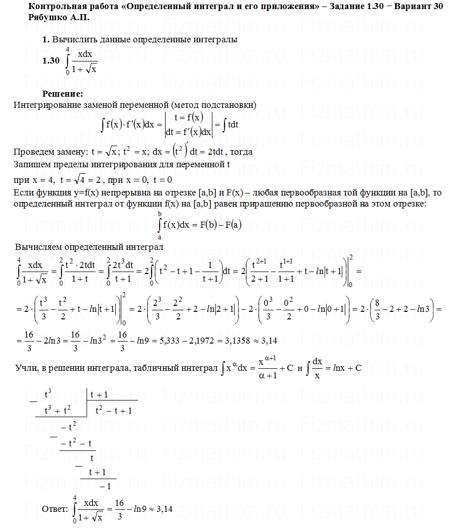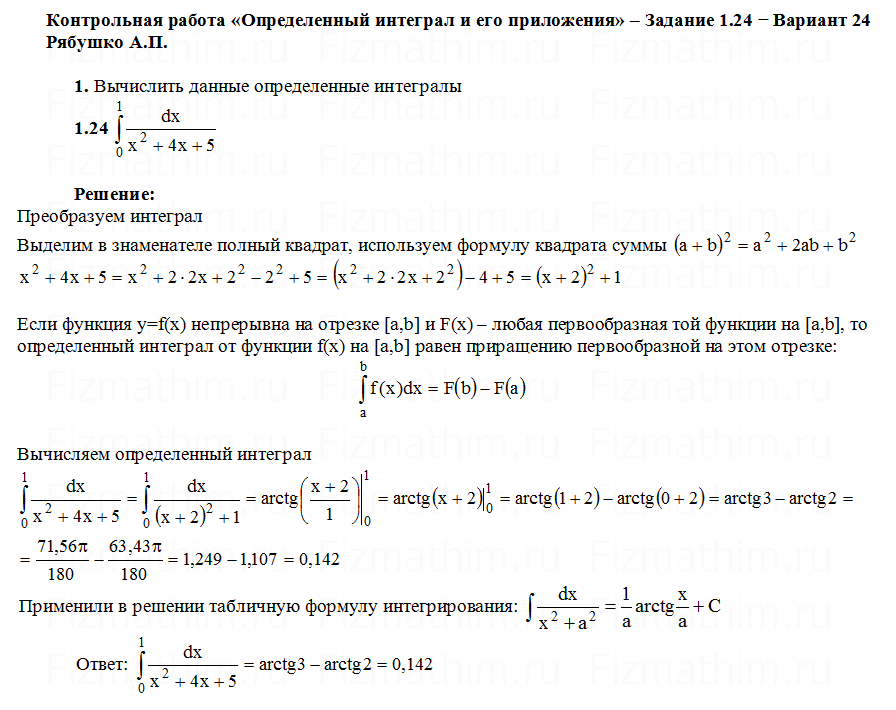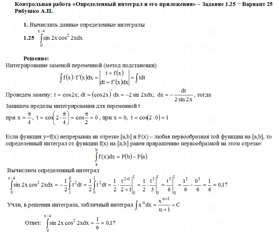 Главная » Фото решений » Определенные интегралы