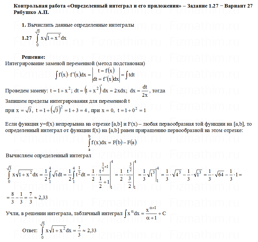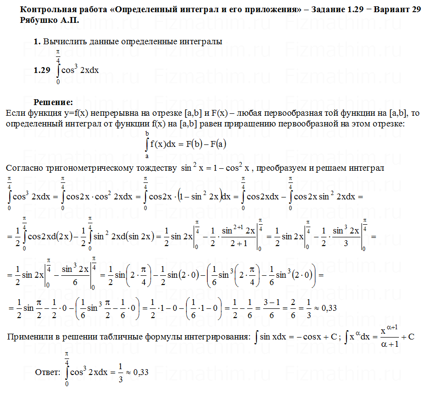 Решенные задания и примеры решений на тему определенные интегралы и приложения