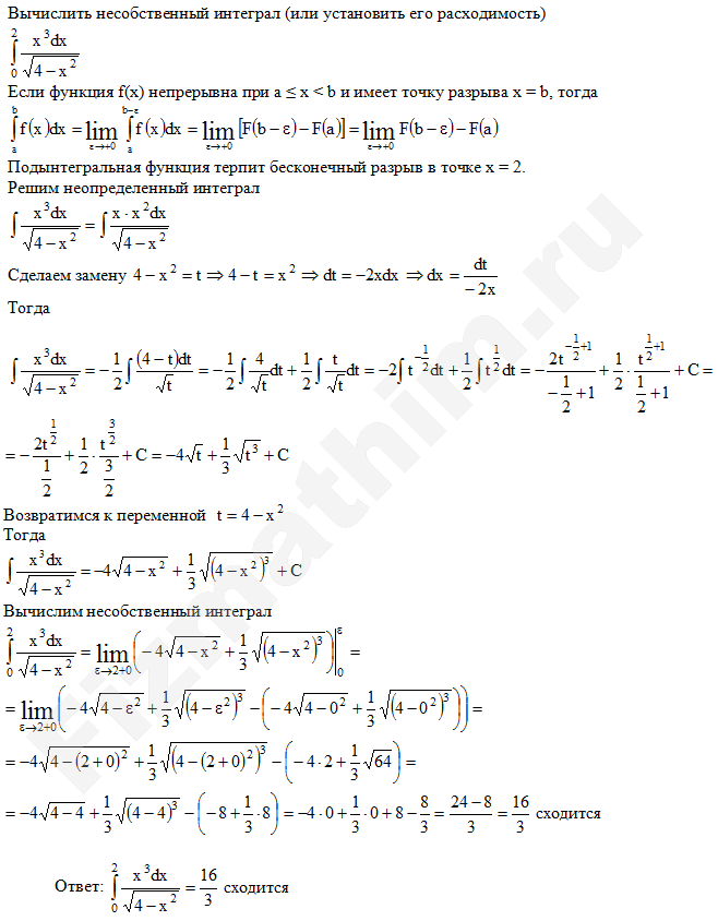 Несобственные интегралы примеры решенийГлавная » Фото решений » Определенные интегралы » Несобственные интегралы