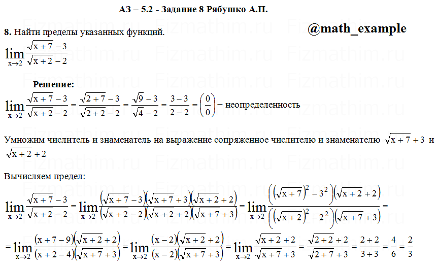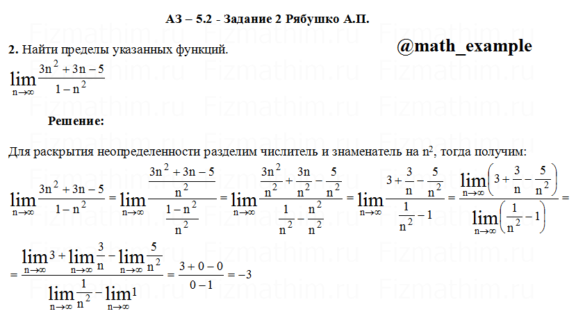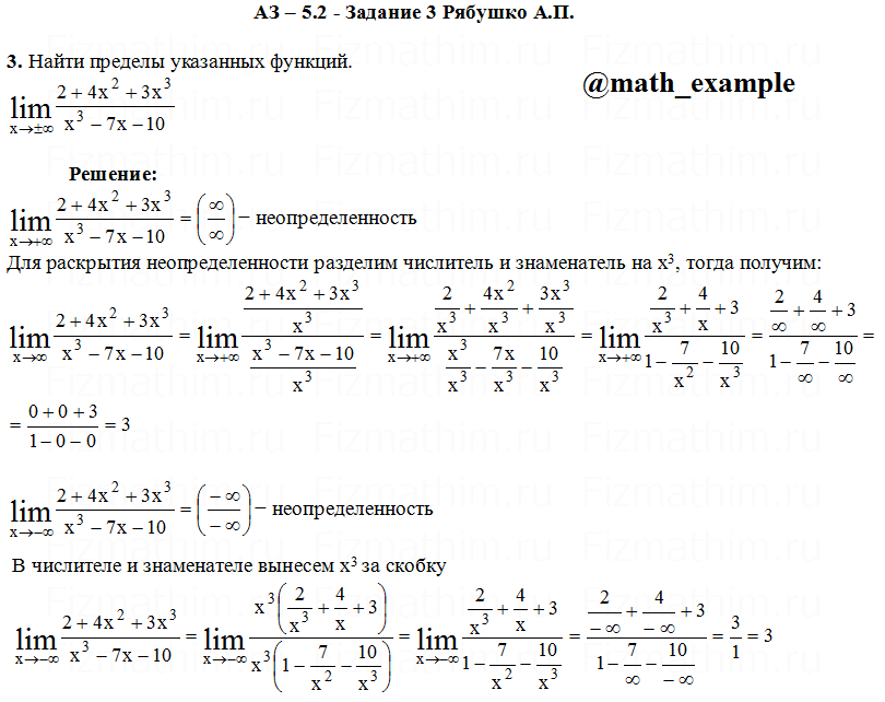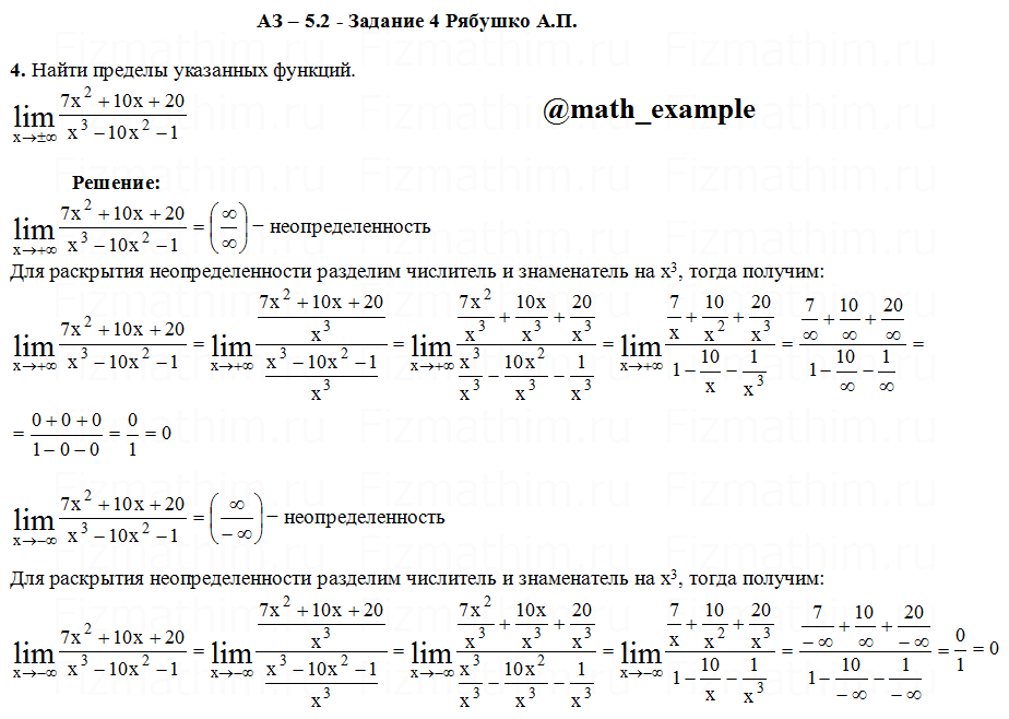 Решенные задания и примеры решений на тему Пределы функций и приложения