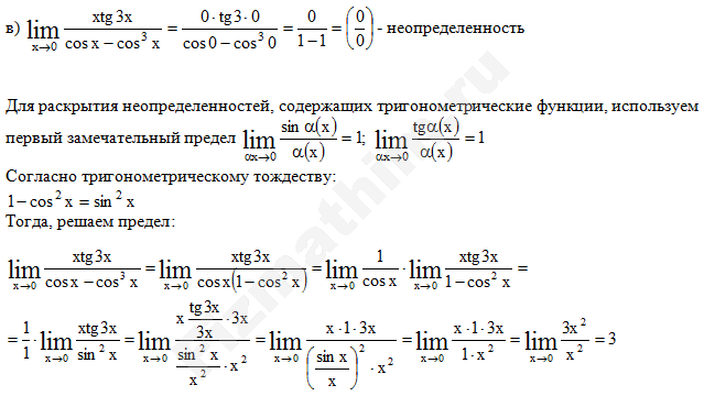 Решенные задания и примеры решений на тему Пределы функций и приложения