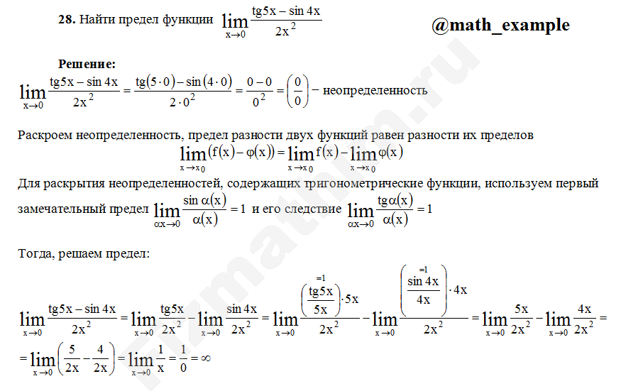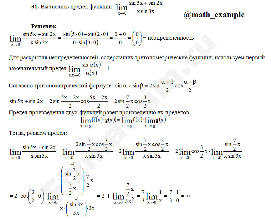 Решенные задания и примеры решений на тему Пределы функций и приложения